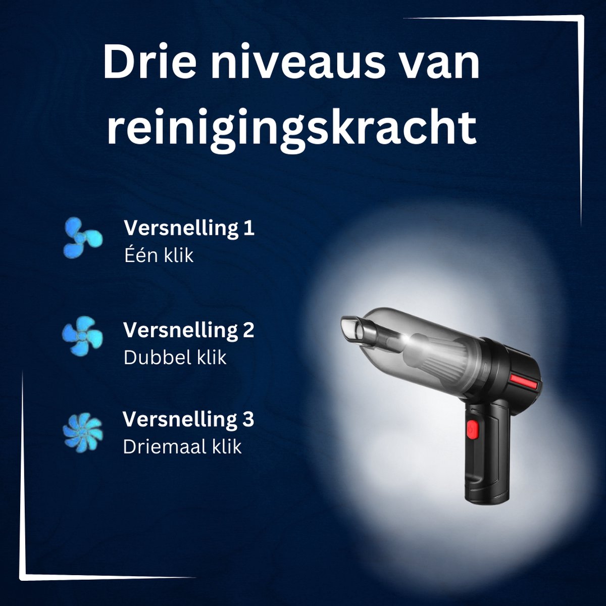 2. Efficiënt en functioneel: De Air Duster is ontworpen voor efficiënte en functionele reiniging, waardoor zelfs de moeilijkst bereikbare hoekjes stofvrij worden.