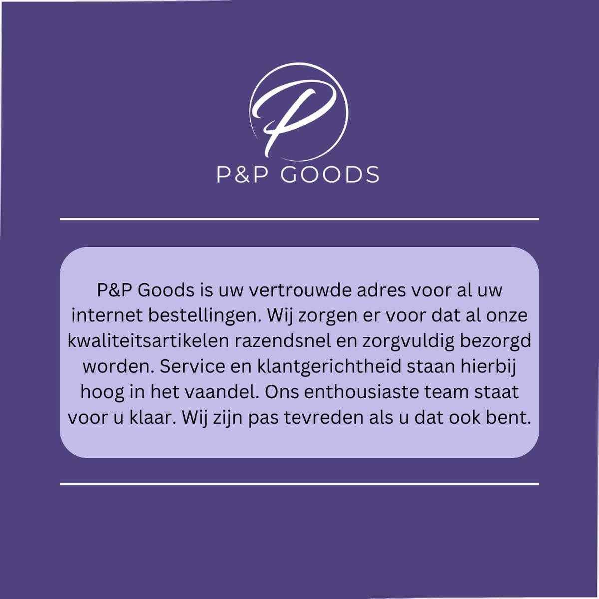 Bij P&P Goods® streven wij naar een 100% klanttevredenheid! Ons team staat daarom altijd voor je klaar. Toch niet tevreden met jouw aankoop of loop je tegen problemen aan? Neem contact met ons op en we schieten je razendsnel te hulp.