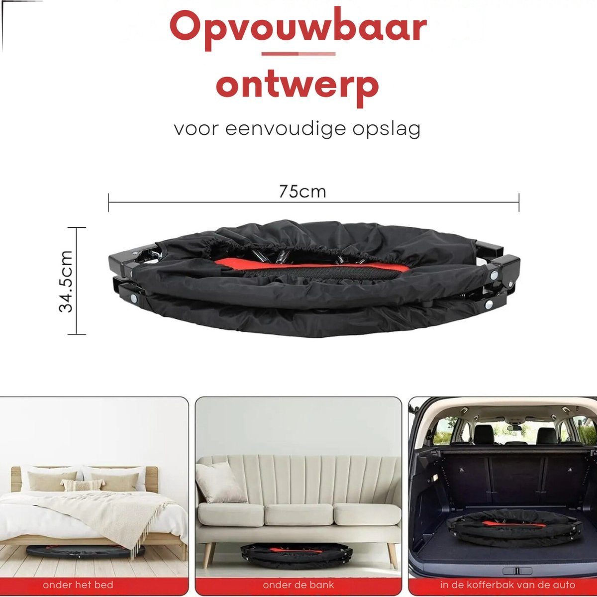 • Indoor fitness trampoline: Deze trampoline is speciaal ontworpen voor gebruik binnenshuis, waardoor je op elk moment van de dag kunt trainen, ongeacht het weer buiten. Ideaal voor thuisfitness of in een kleinere ruimte zoals een appartement.
