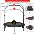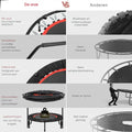 • Verstelbaar handvat voor stabiliteit: De trampoline is uitgerust met een verstelbaar handvat, dat in hoogte kan worden aangepast om de veiligheid en stabiliteit te garanderen. Dit is ideaal voor beginners die extra ondersteuning nodig hebben of voor intensieve trainingen waarbij balans belangrijk is.