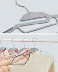 - [Ruimtebesparend] De hangers zijn slechts 0,5 cm dik en nemen weinig ruimte in beslag. Jassen aan de hangers, broeken aan de stang, sjaals, dassen etc. aan de kleine middenstang - deze hangers helpen je meer opbergruimte in de kledingkast te creëren voor meer kleding