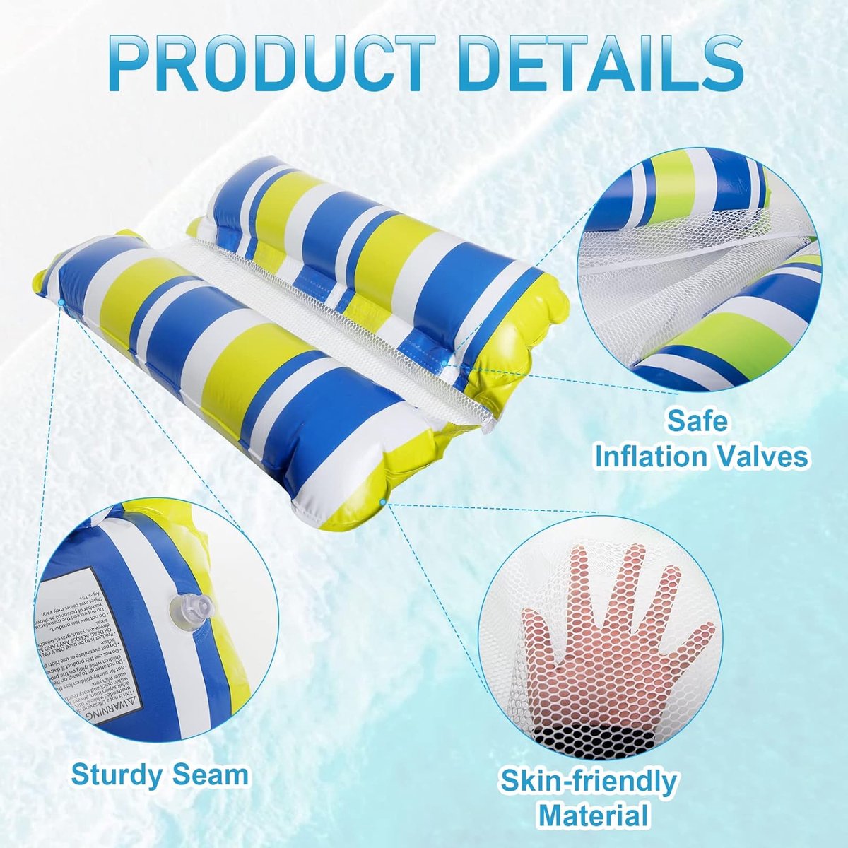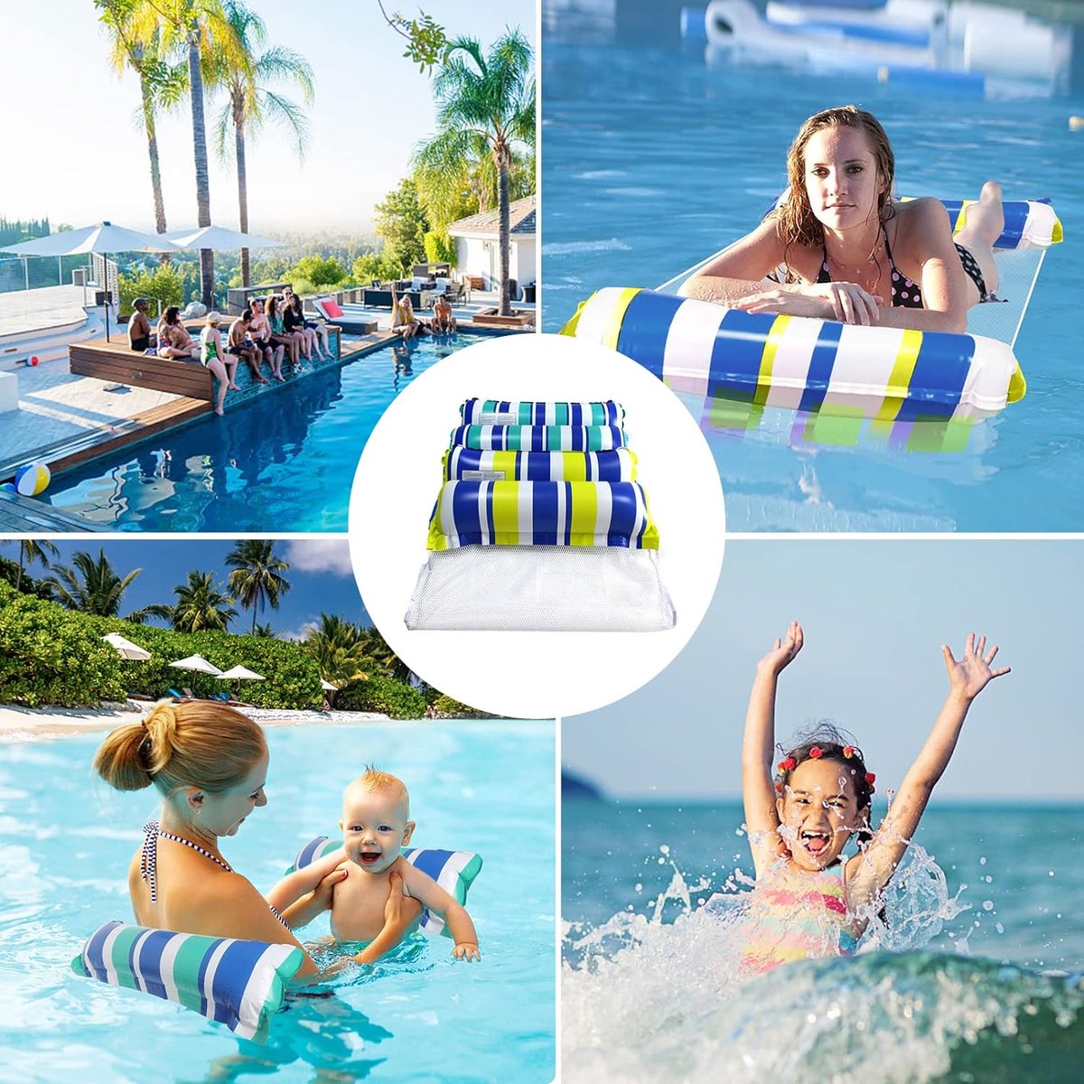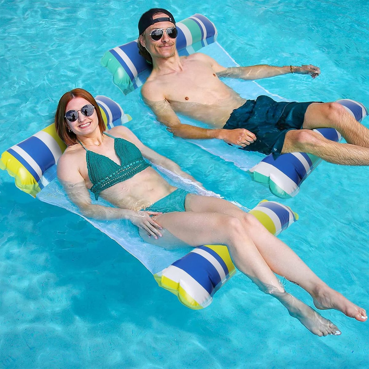 Pakket van 2 opblaasbare waterhangmat zwembedden, 4-in-1 drijvend luchtmatras met gaas, waterhangmat voor volwassenen en kinderen, ligstoel zwembad lounge strand water speelgoed.