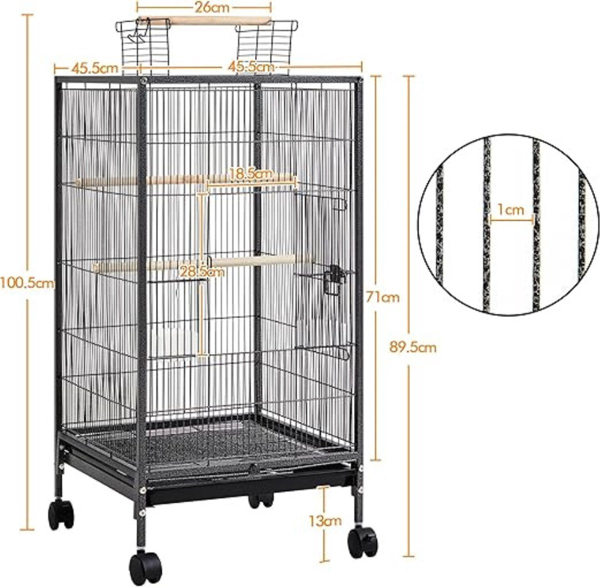 Papegaaienkooi – 3-IN-1 - Parkietenkooi Op Voet & Wieltjes – Grote Vogelkooi Voor Binnen – Vogelkooien – Vogel Speelgoed - Voliere – 45x45x100 Cm - Zwart