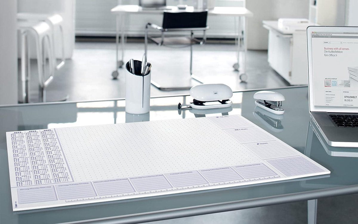 Papieren bureauonderlegger met 3-jarige kalender en weekplanner A2 (595 x 41 cm) 80 g/m² 30 vellen 2 stuks. deskpad