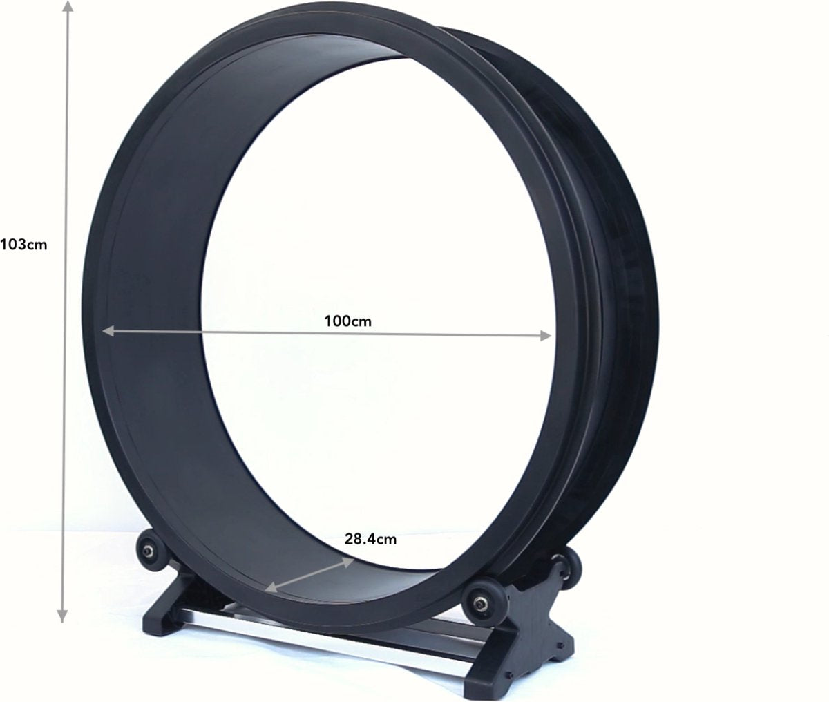 De kattenwiel heeft een groot diameter van 100cm groot. hierdoor is deze geschikt voor de meeste grote kattenenrassen zoals een Maine Coone.