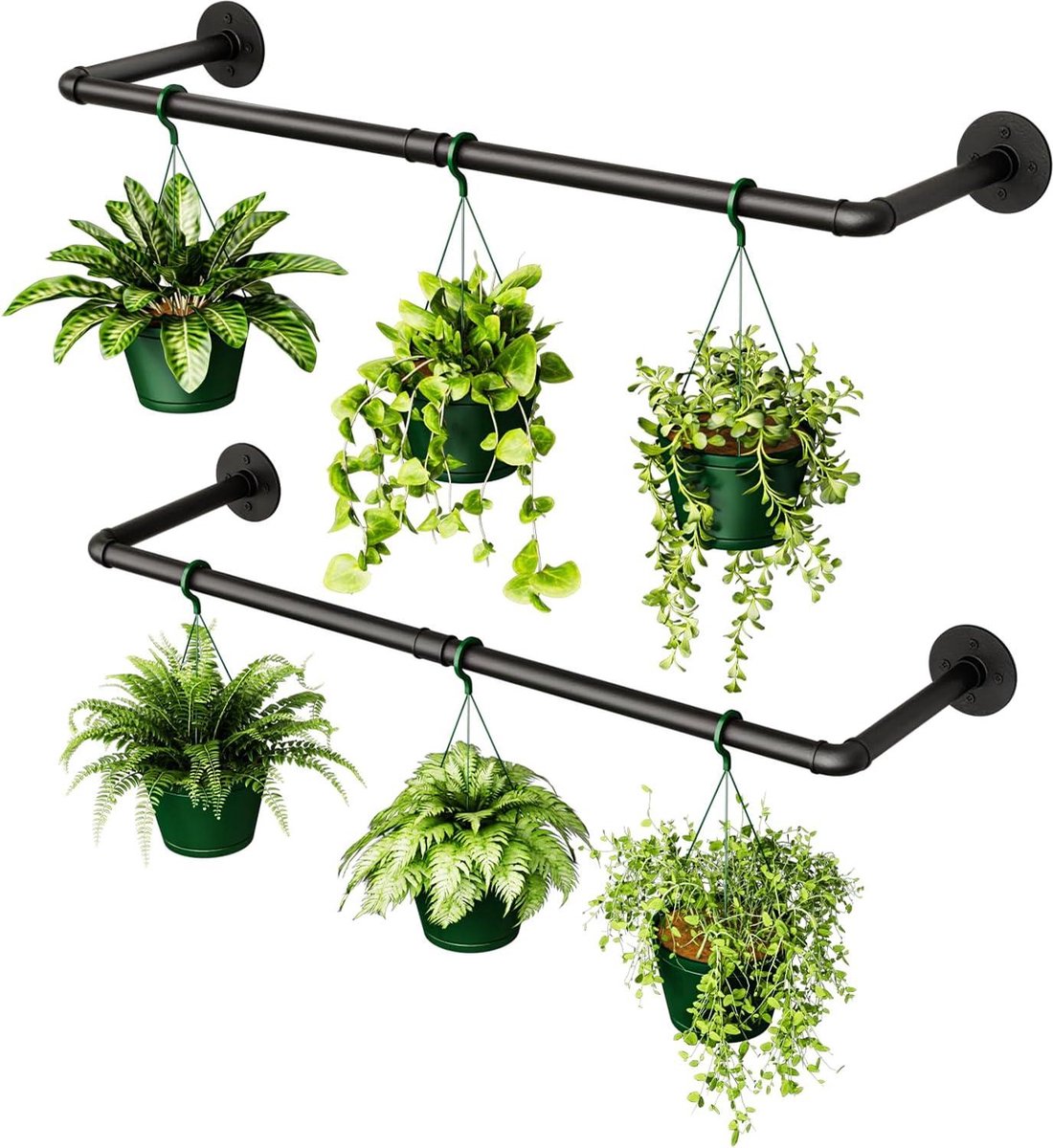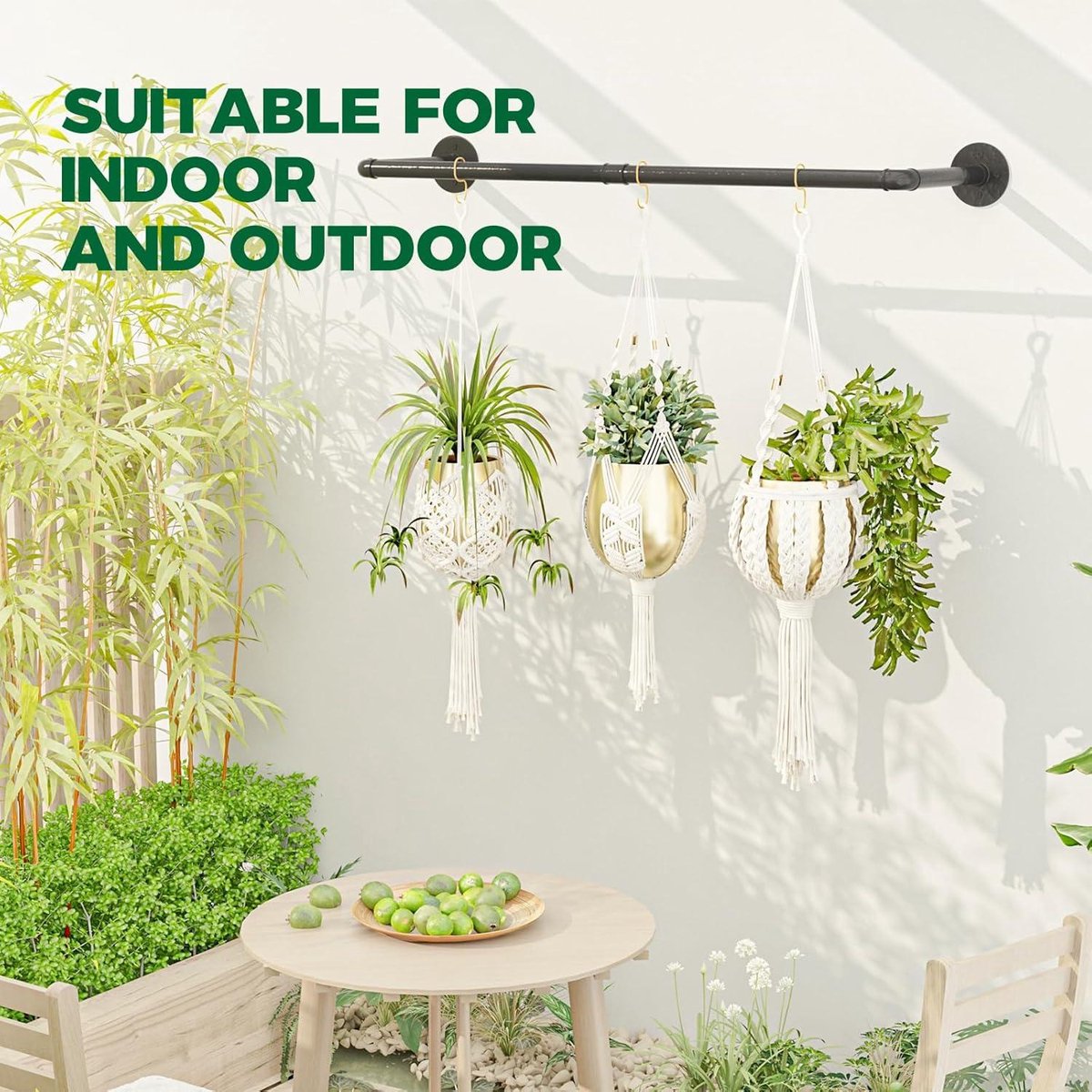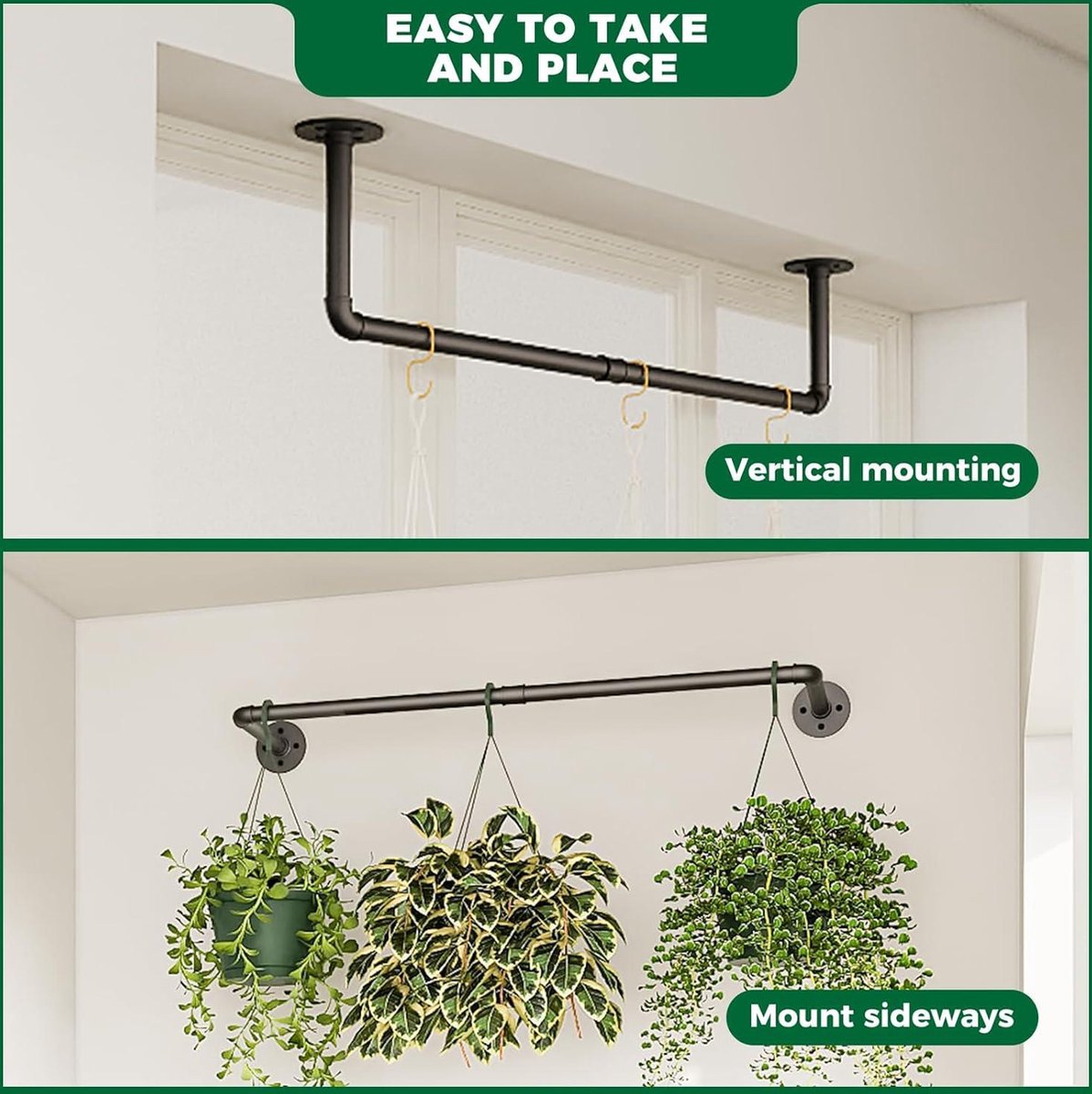 Plantenhanger - Planthanger hangende plantenbak zwart metalen staaf binnen plafond raam bevestiging
