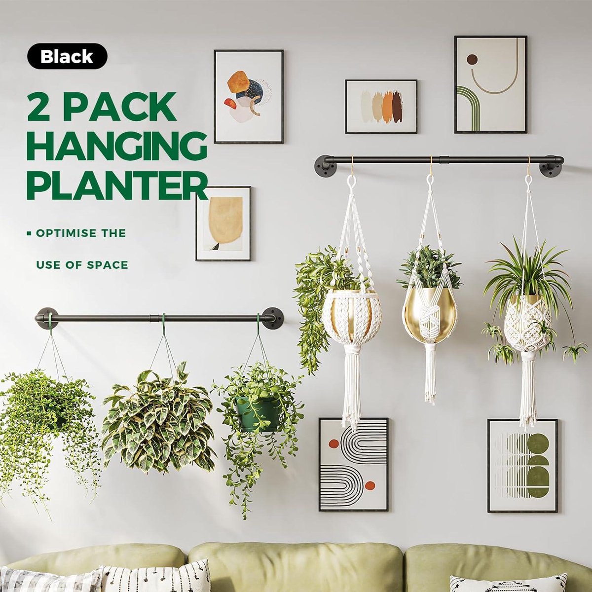 Haal het beste uit je hangende planten met onze handige plantenhanger set! Met deze set van 2 metalen plantenhangers kun je verschillende hangplanten, macramé plantenhangers en kunstplanten binnen houden. Creëer een harmonieuze en stijlvolle uitstraling in je interieur met deze royaal ontworpen hangende plantenbakken.