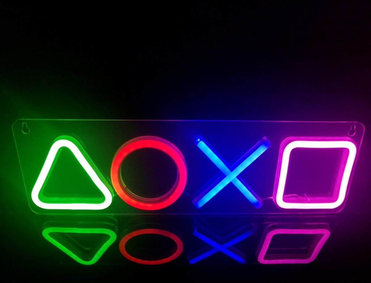 Playstation Neon Lamp - Game Room - USB Aansluiting en Bevestigingsmateriaal - Muur Decoratie - Neonbord - Tiener Speelkamer - Woonkamer - Slaapkamer