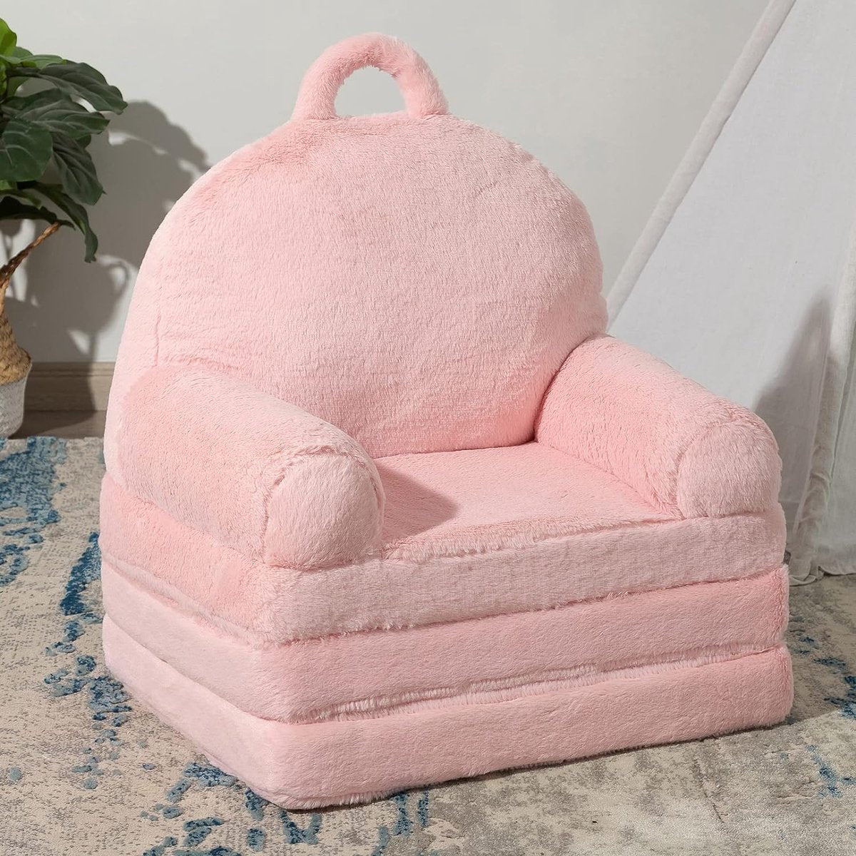 Pluizige Kinder Fauteuil Ligbed Uitvouwbaar Roze