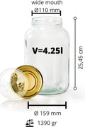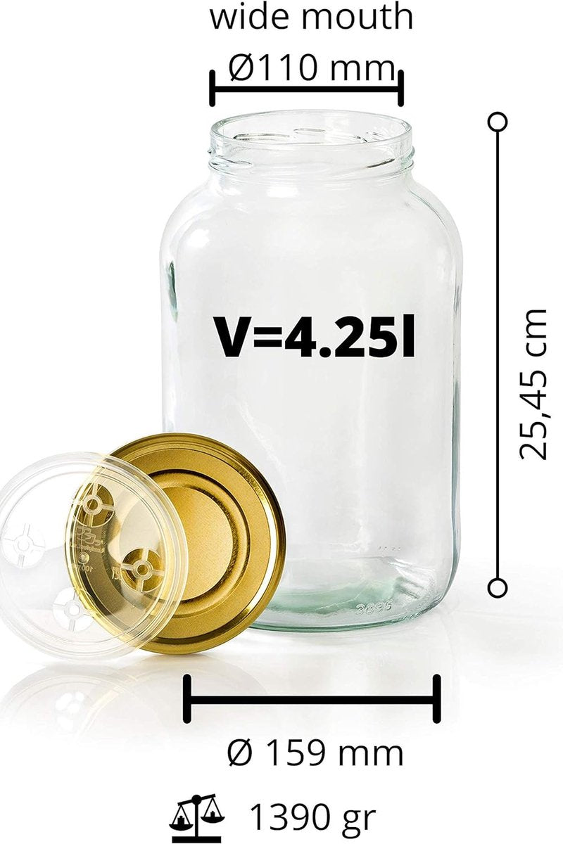 Potten met deksel - 4,25 liter fermentatiepot voor het maken van kombucha, kimchi, kefir - fles met brede opening voor inmaken, fermentatie - (2 GLAZEN MET 4,25 LITER)