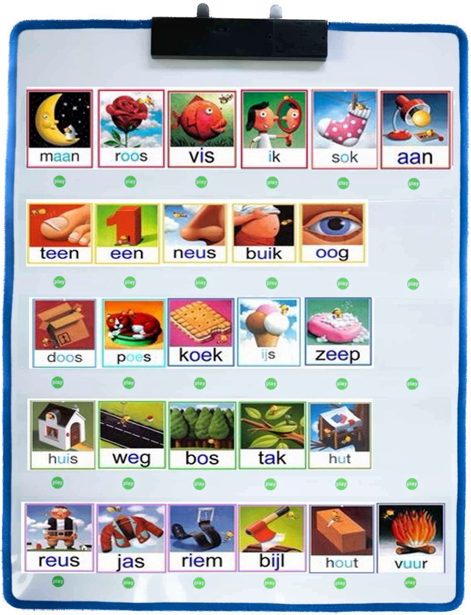 Deze pratende pictowand of ook wel Interactive Wall of Sprekende Muur genoemd, heeft plaats voor 30 kaartjes met bijbehorende spraak van elk 30 seconden.