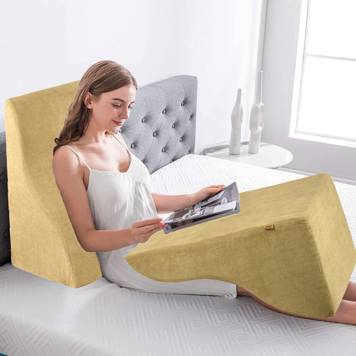 【 VERHOGEN EN ONDERSTEUNEN 】 Ons unieke ontwerp van wigkussen biedt u comfortabele neksteun wanneer u gaat liggen/zitten, maar kan ook worden gebruikt als een verhoogd steunkussen voor uw benen