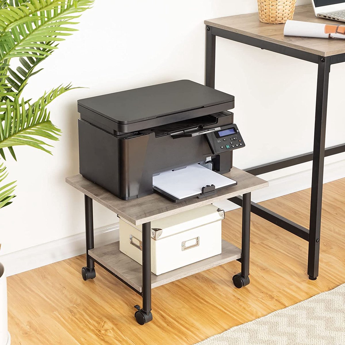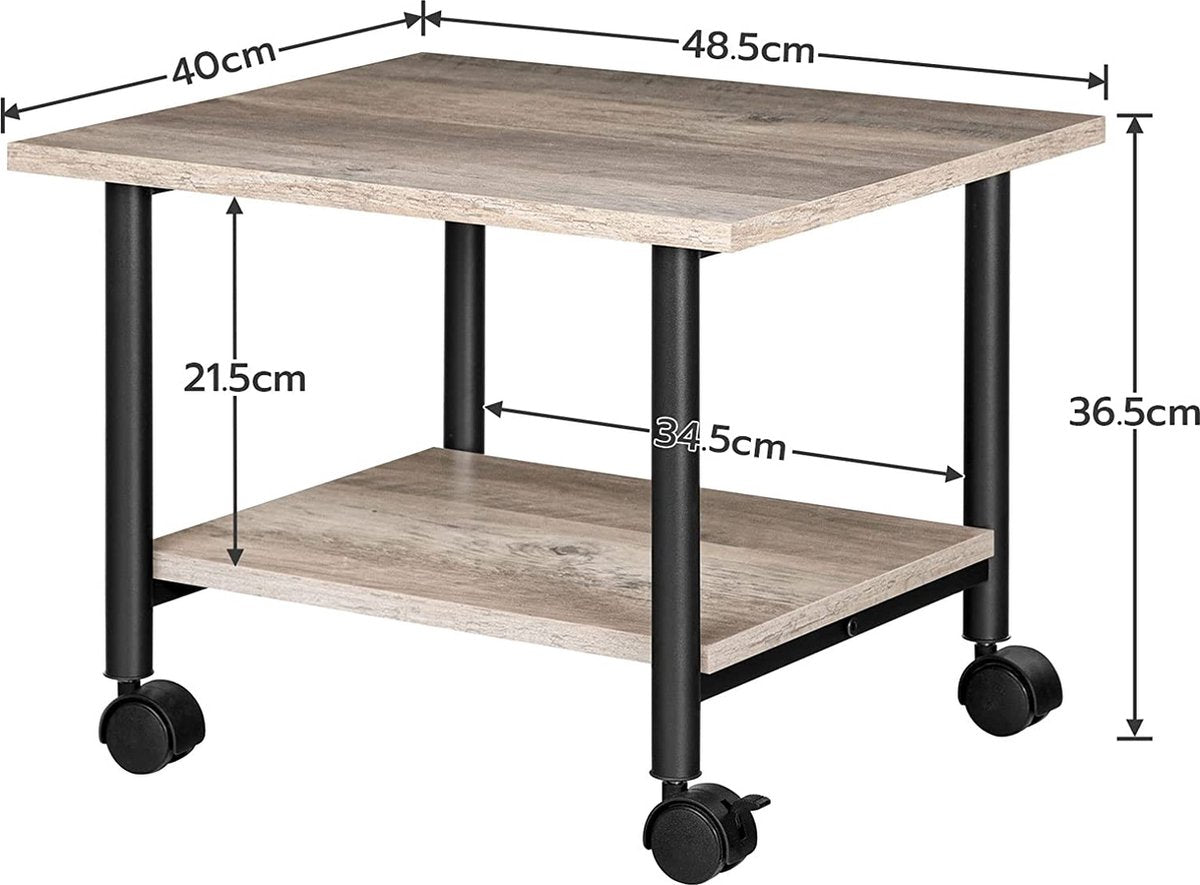 Printertafel op vergrendelbare wielen - bureau organizer - printerkast of printerwagen - printerstandaard - Kantoorkast - printer bureau industrieel - 48,5 x 40 x 36,5 cm - grijs en zwart