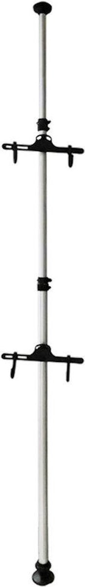 Plafond Fiets ophangsysteem voor 2 Fietsen, voorzien van een telescoopstang die u eenvoudig tussen de vloer en het plafond klem zet. Om zo uw 2 fietsen ruimtebesparend op te hangen.