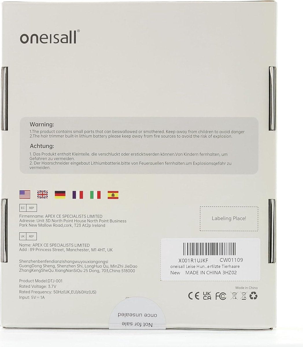 - Inhoud: Professionele hondentondeuse, 6 opzetstukken (3 mm/6 mm/12 mm/18 mm/24 mm), reinigingsborstel, verzorgingsolie, oplaadkabel, handleiding