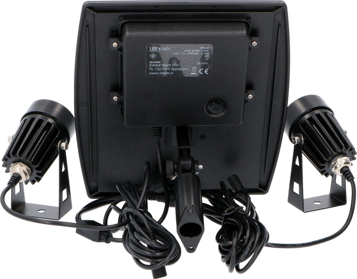 Verpakkingsinhoud: 1 x LED.NL LongLife zonnepaneel + 2 x LED Grondspots + 3 grondpinnen + Handleiding