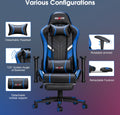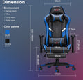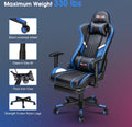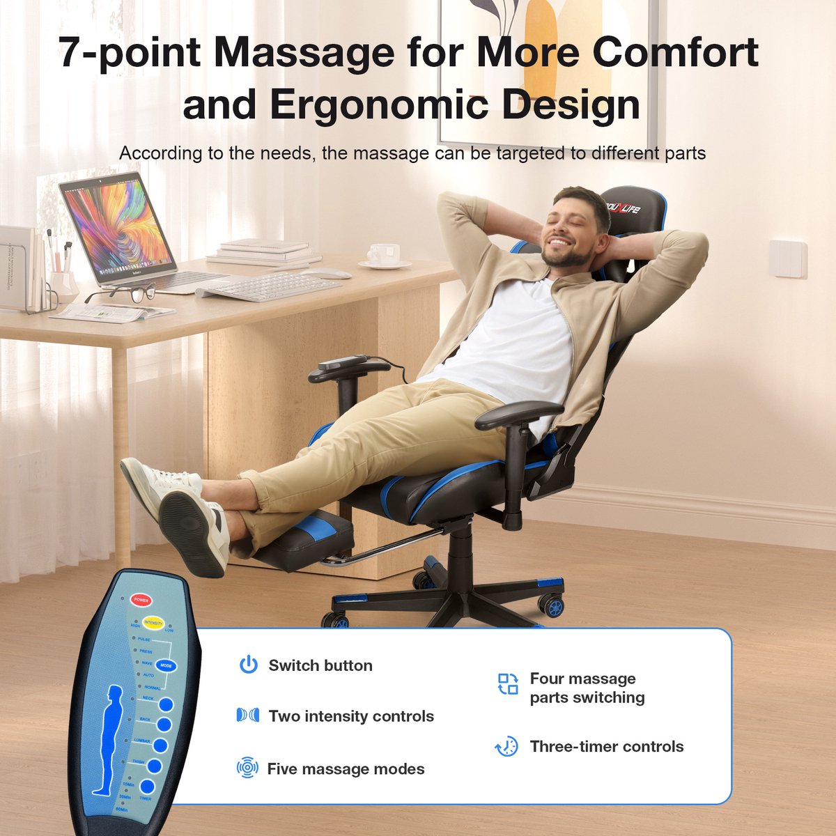 PU Massagestoel met voetenbankje - Ergonomische Gamestoel - 175° - Bureaustoel - Blauw&Zwart