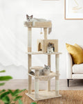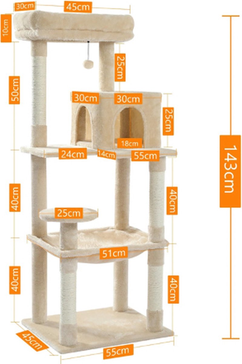 Rakmishop - Kattenboom - 5 Verdiepingen - Kattentoren - Kattenpaal - Kattenpaal voor grote katten - Krabtoren - 143x50x45 cm - Beige