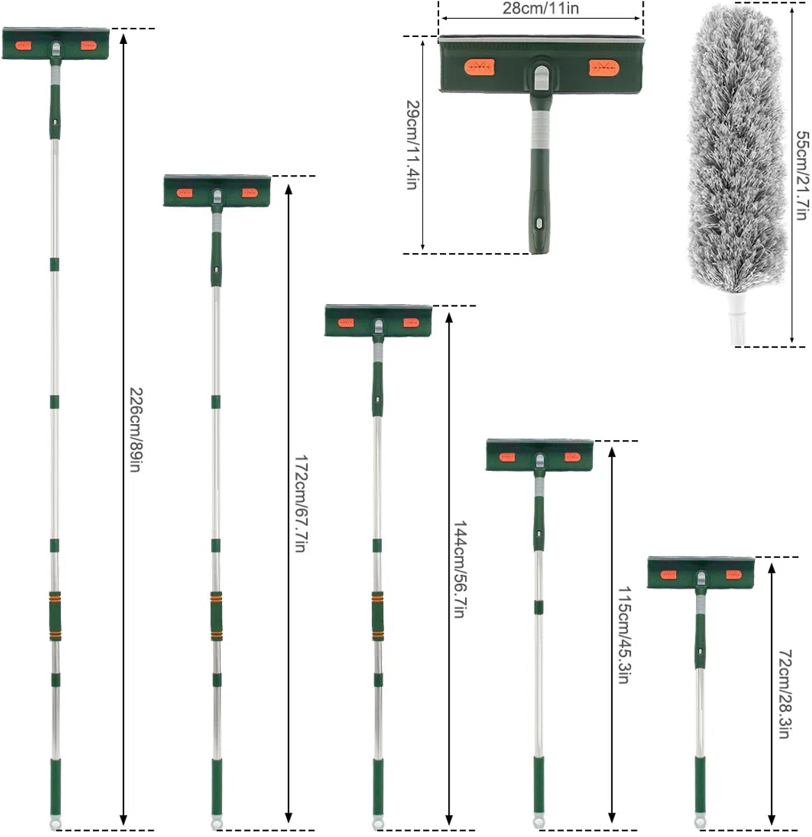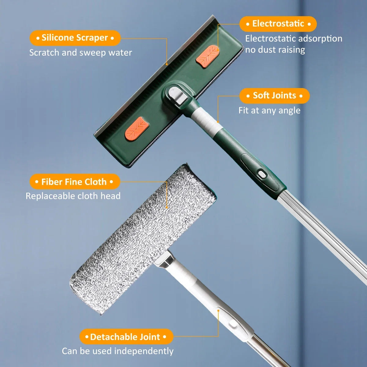 Telescopische steel: De uitschuifbare steel kan worden verlengd om hoge ramen en moeilijk bereikbare plaatsen zonder ladder te reinigen. Hierdoor is het schoonmaken veiliger en gemakkelijker.