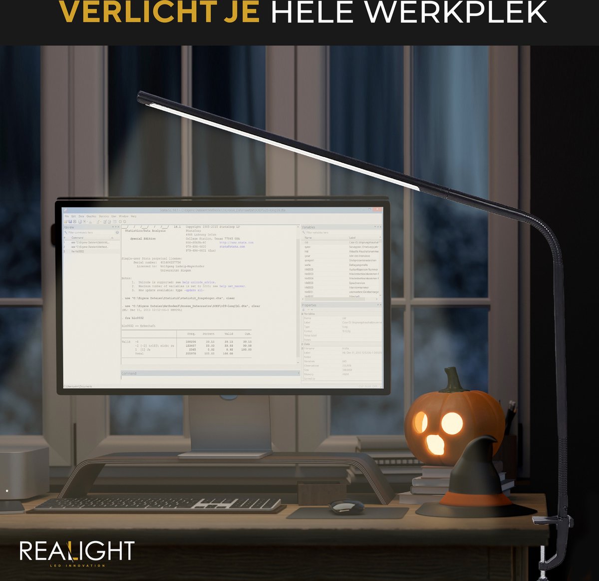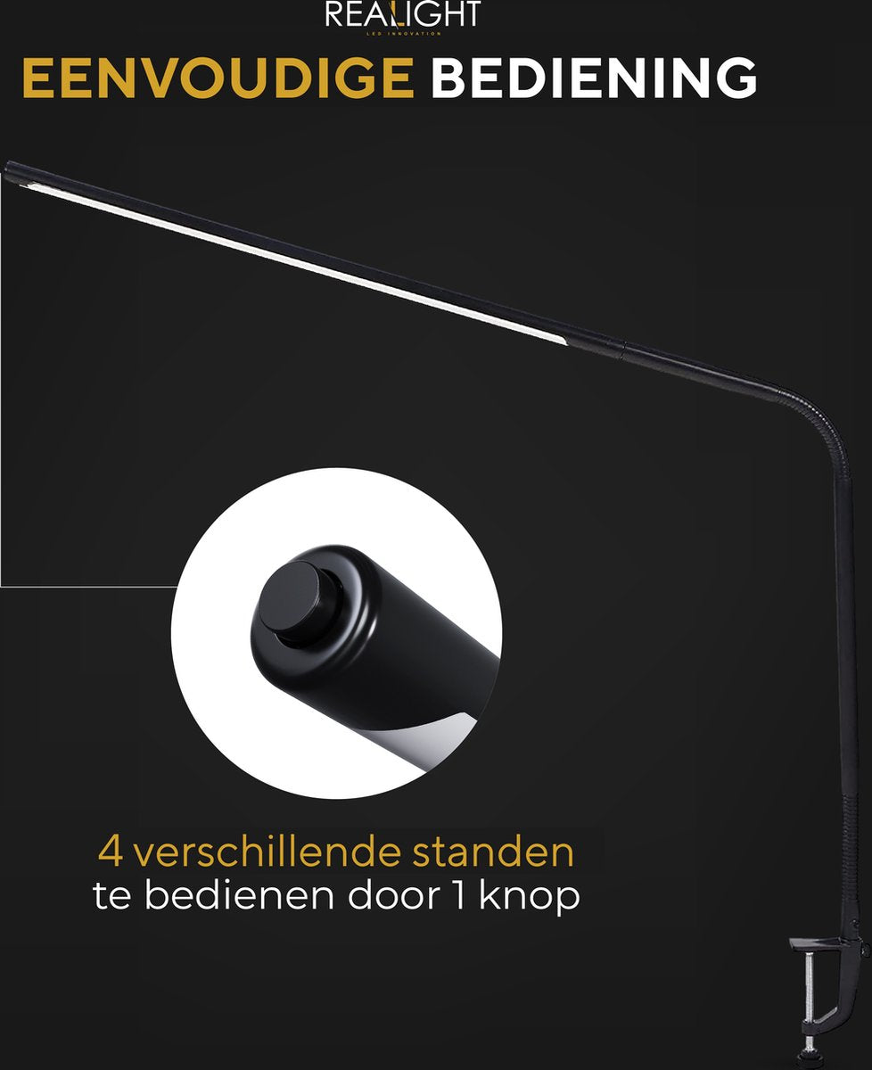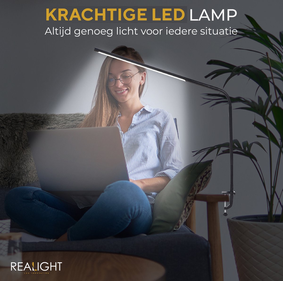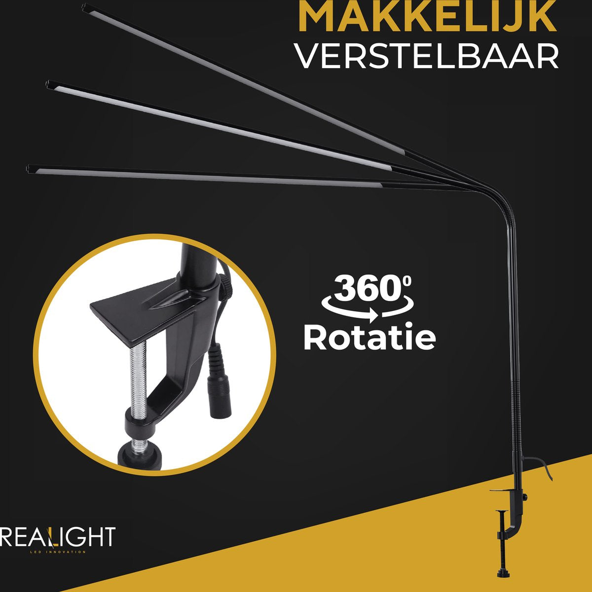 Realight Led Bureaulamp met Klem - Verstelbare Leeslamp - Daglichtlamp - 110 x 1,5 cm - Zwart