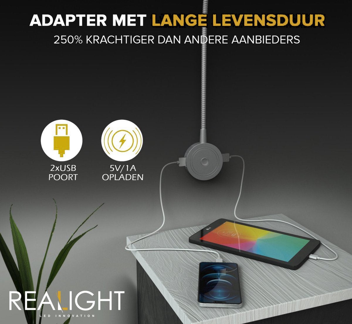 Maak kennis met de Realight Leeslamp, de perfecte aanvulling voor gezellige verlichting, met zowel een USB- als een USB-C-aansluiting!