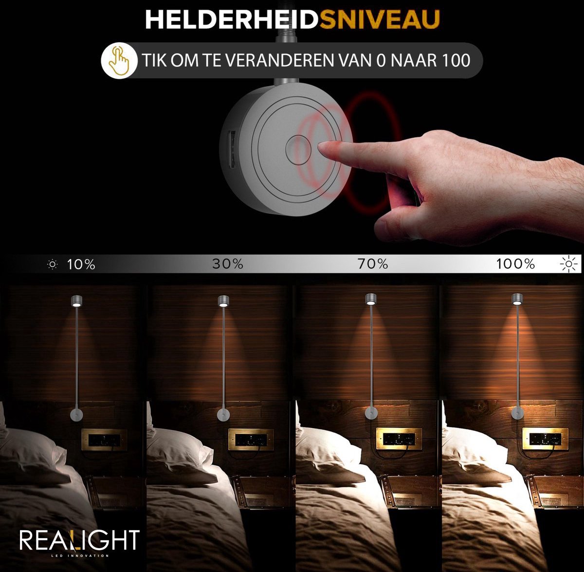 Wat deze Realight Leeslamp echt bijzonder maakt, is dat hij niet alleen naast het bed kan worden gebruikt, maar ook als wandlamp, waardoor hij ongelooflijk veelzijdig is in zijn toepassingen.