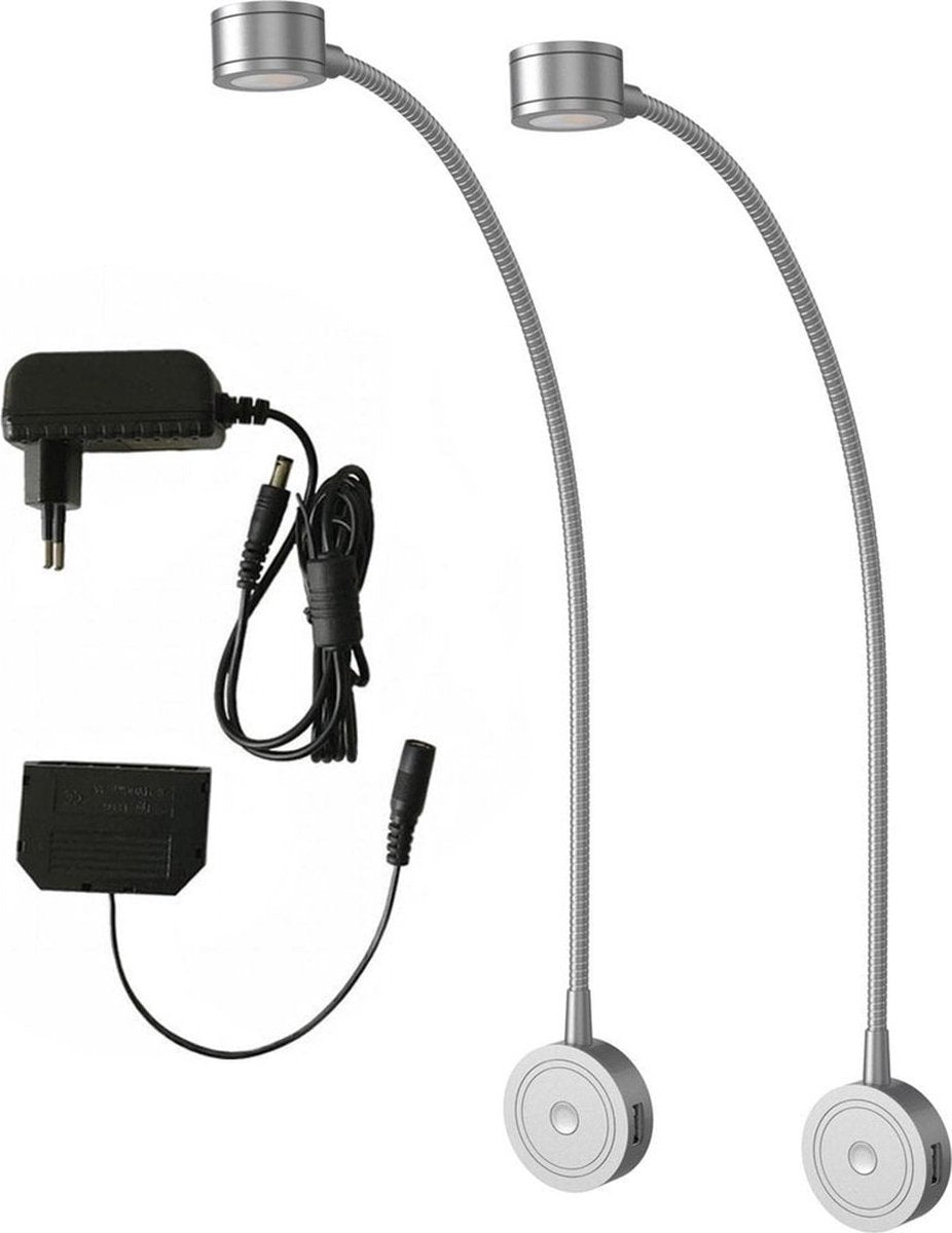- 2x Realight leeslampen in elegant zilver aluminium