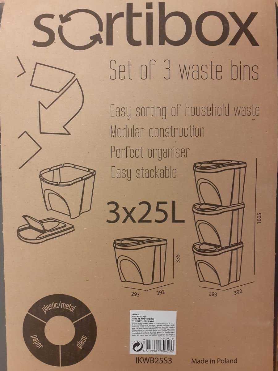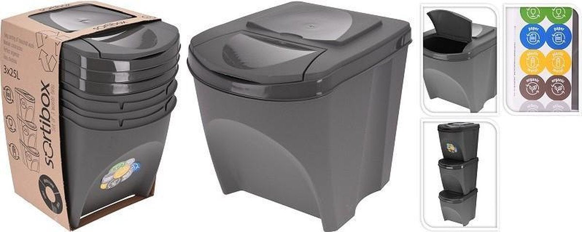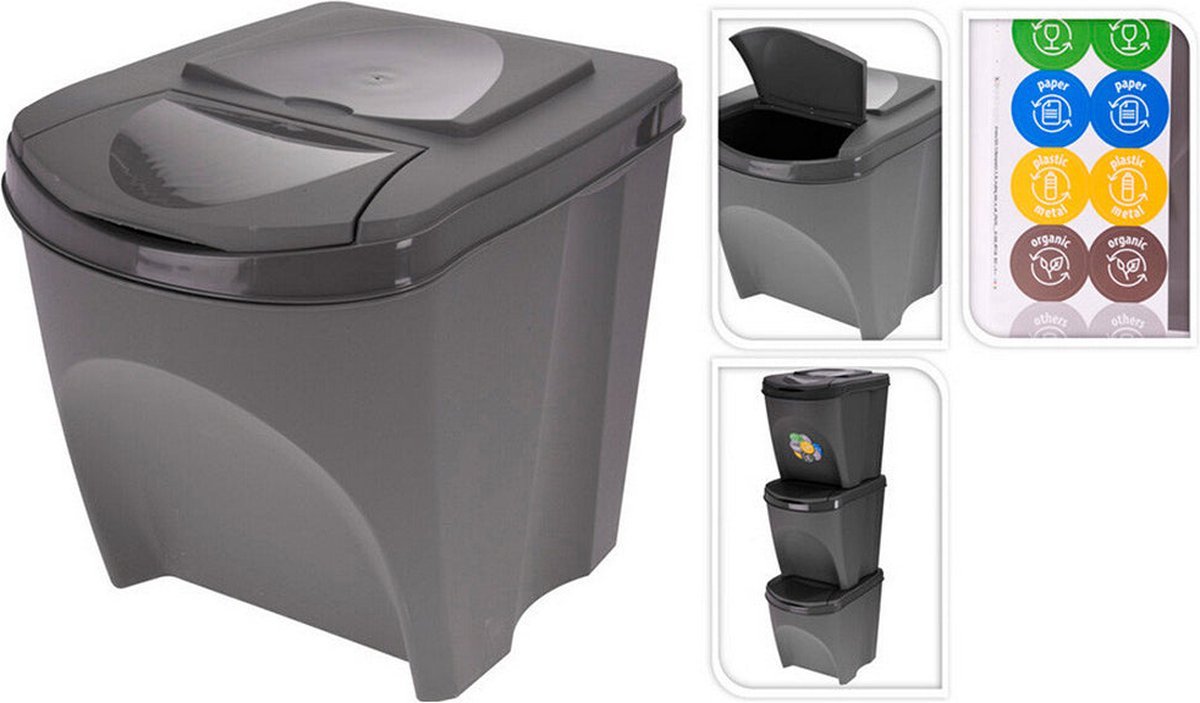 Deze handige set afvalscheidingsbakken komen in een set van 3. Deze handige en compacte set van 3 hebben allemaal een deksel en kunnen zowel naast elkaar als staan als verspreid. Met een handig en compact design zijn deze afvalscheidingsbakken ook in elkaar te stapelen zodat als deze niet in gebruik zijn niet veel ruimte innemen in de opslagruimte. Handig om afval te scheiden door middel van bijvoorbeeld stickers, maar ook perfect geschikt om te gebruiken in meerdere verschillende kamers.
