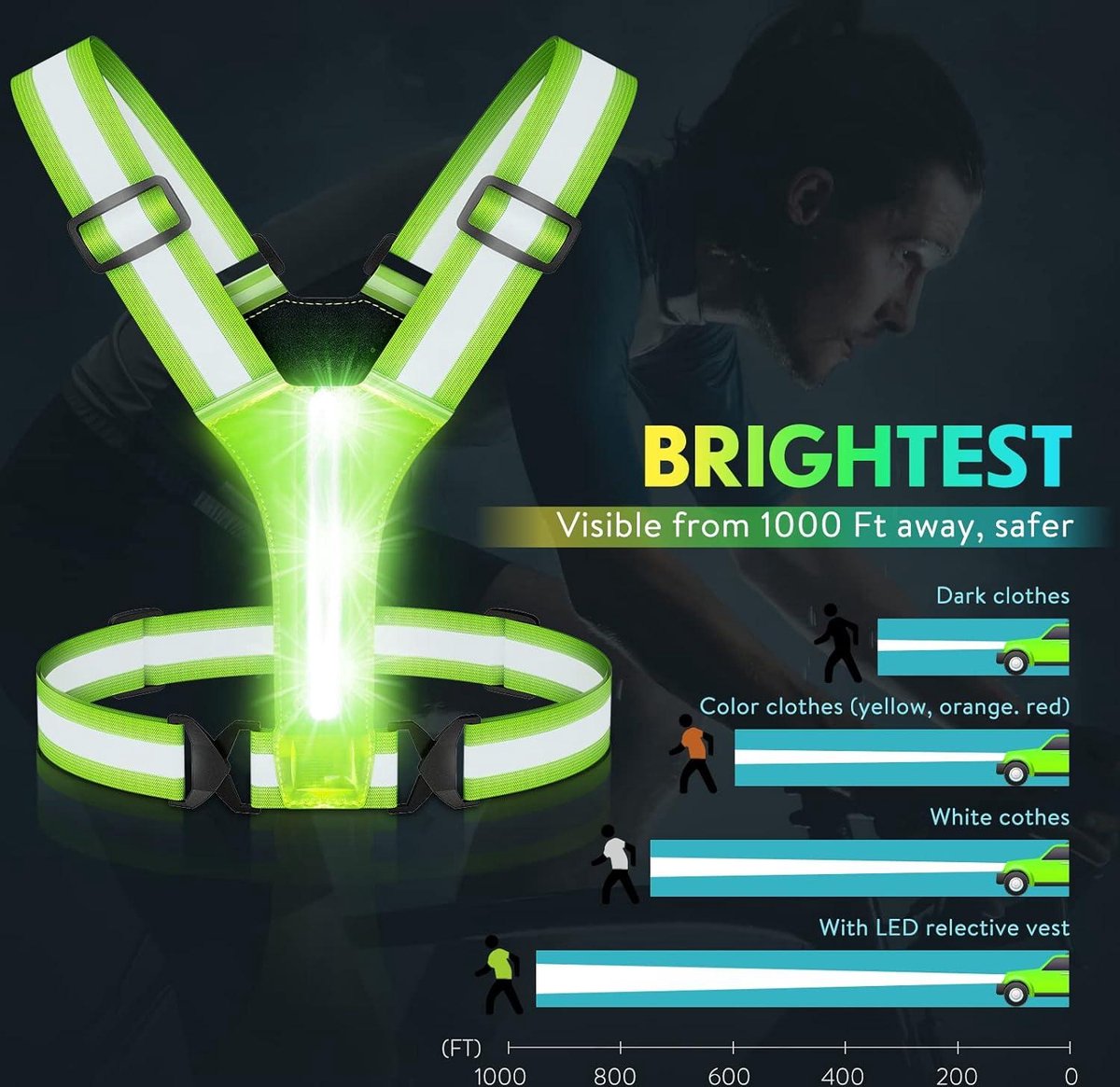 - Oplaadbaar LED-licht voor 10 keer betere zichtbaarheid dan normale reflecterende vesten