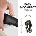 Bovendien is de buggy elegant vormgegeven met een beschermbeugel en duwgreep in lederlook, hoogwaardige stretchstoffen en duurzaamheid in gedachten. De buggy is gemakkelijk te dragen, op te bergen en biedt een comfortabele reiservaring voor zowel ouder als kind.