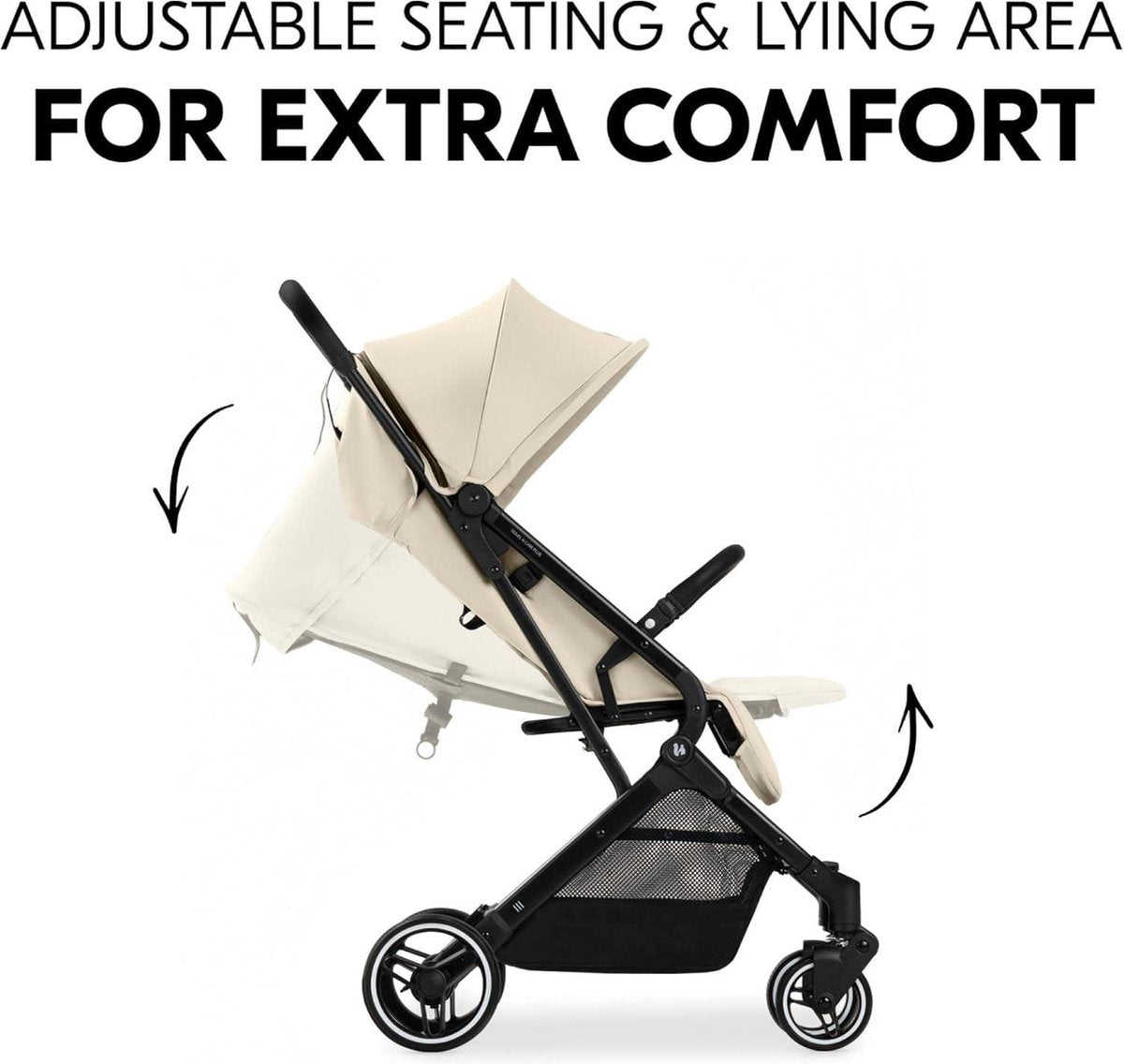 Deze reisbuggy biedt flexibele functies, zoals het met één hand verstellen van de rugleuning naar een ligpositie voor dutjes onderweg. De zonnekap zorgt voor schaduw en bescherming, terwijl de zijdelingse netvensters voor frisse lucht zorgen voor extra comfort.