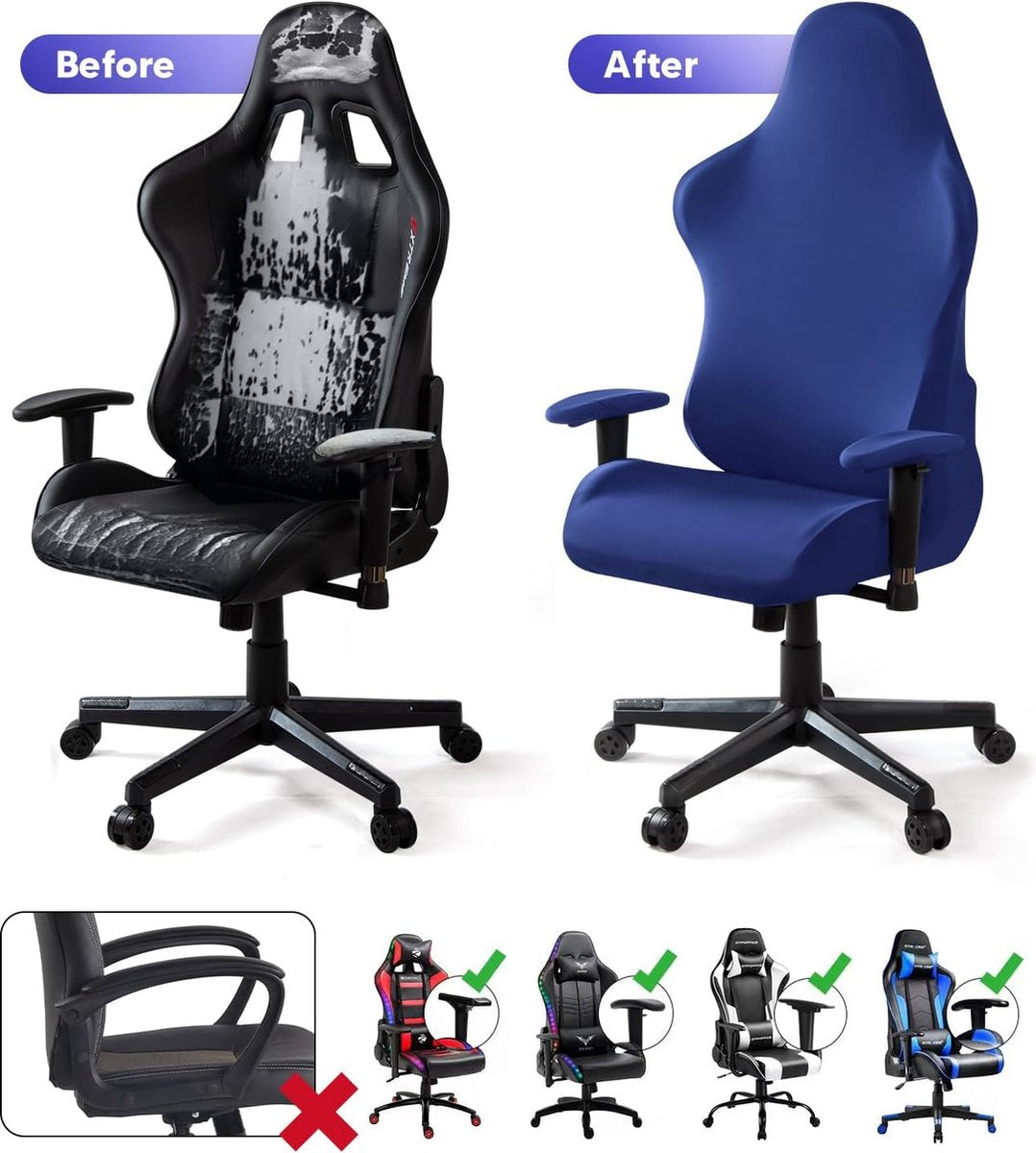 Rekbare gamingstoelhoezen, afneembaar, wasbare stoelhoes voor computerstoel, stoel, stoel, draaistoel, DX Racing, gamning-stoel (geen stoel), blauw