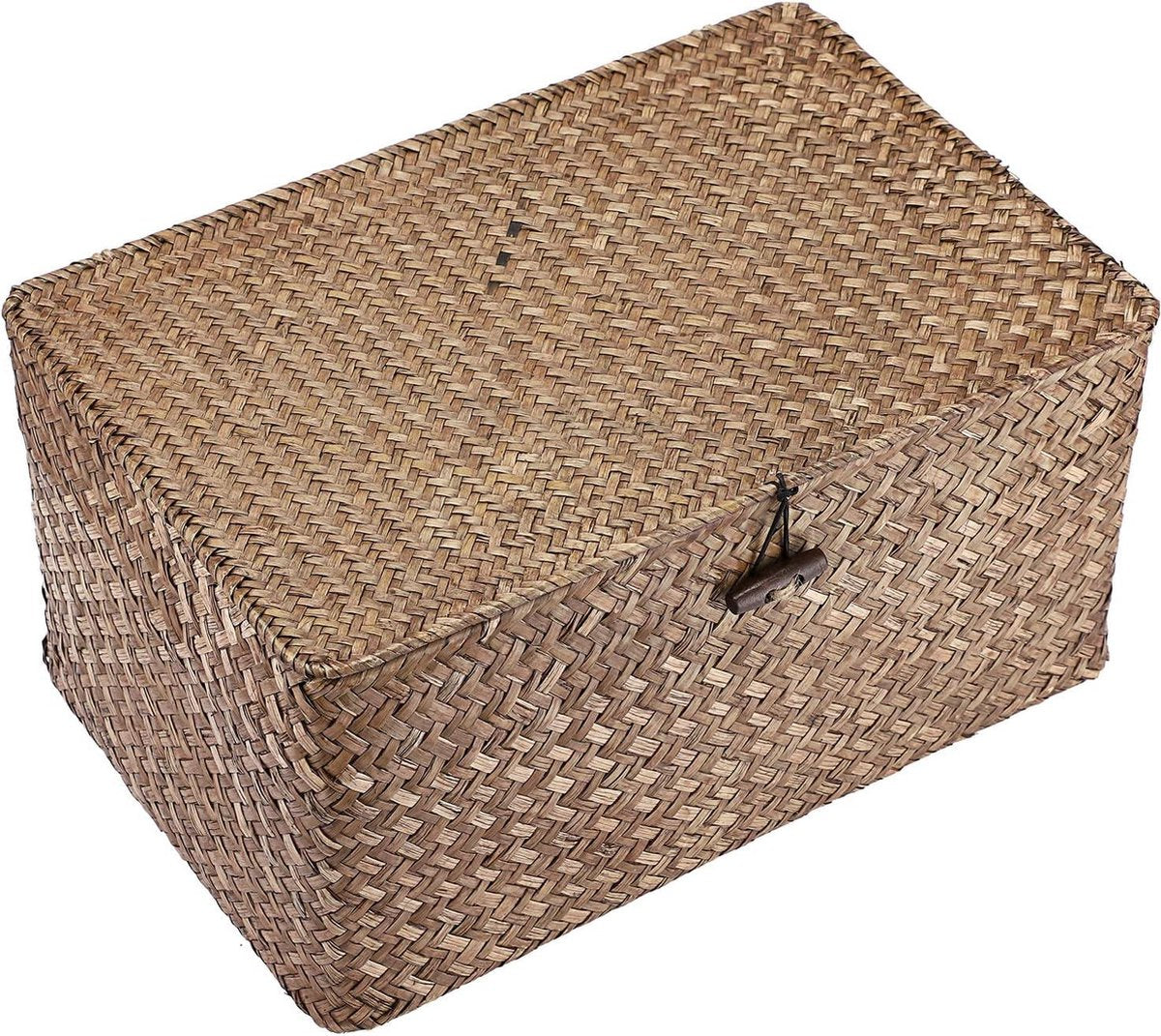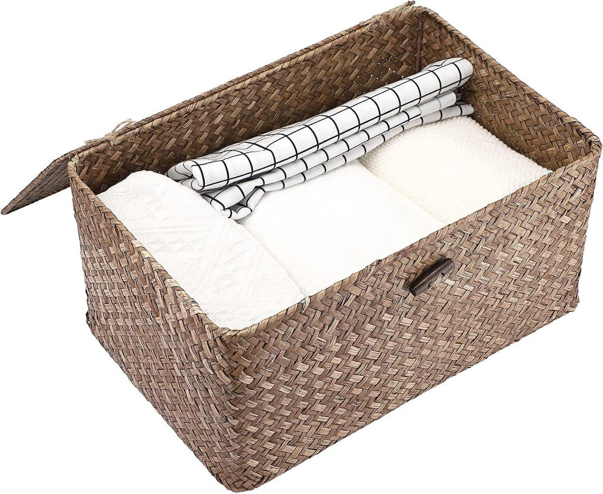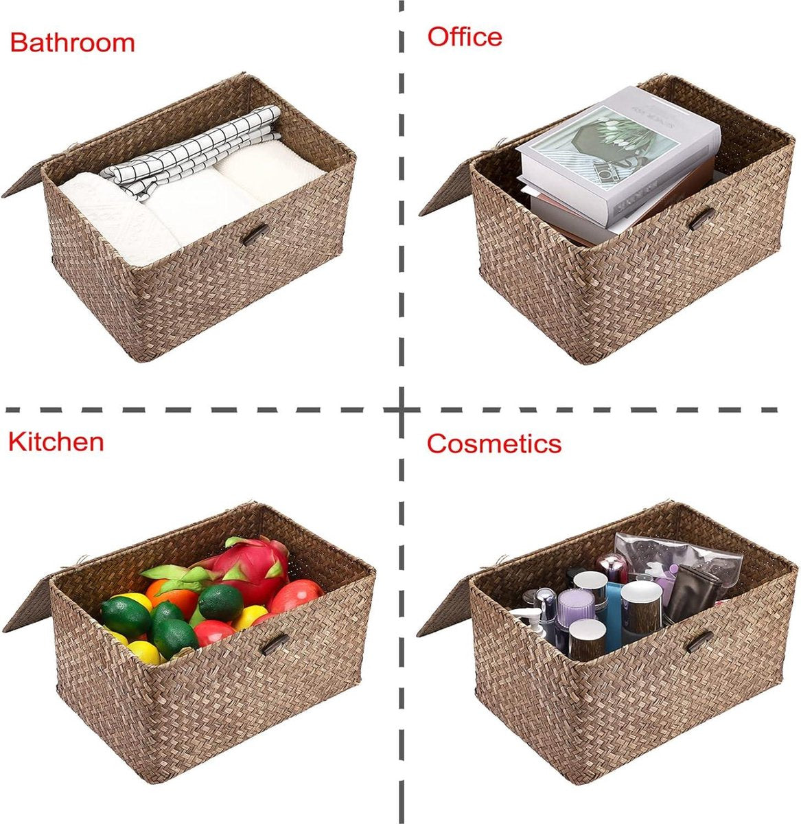 Rieten mand met deksel Sweet Living Opbergmand van zeegras voor bureau en badkamer - geweven zeegras opbergdoos planken - decoratieve mand - multifunctionele opbergmand - koffie groot Rieten mand met deksel sweet living
