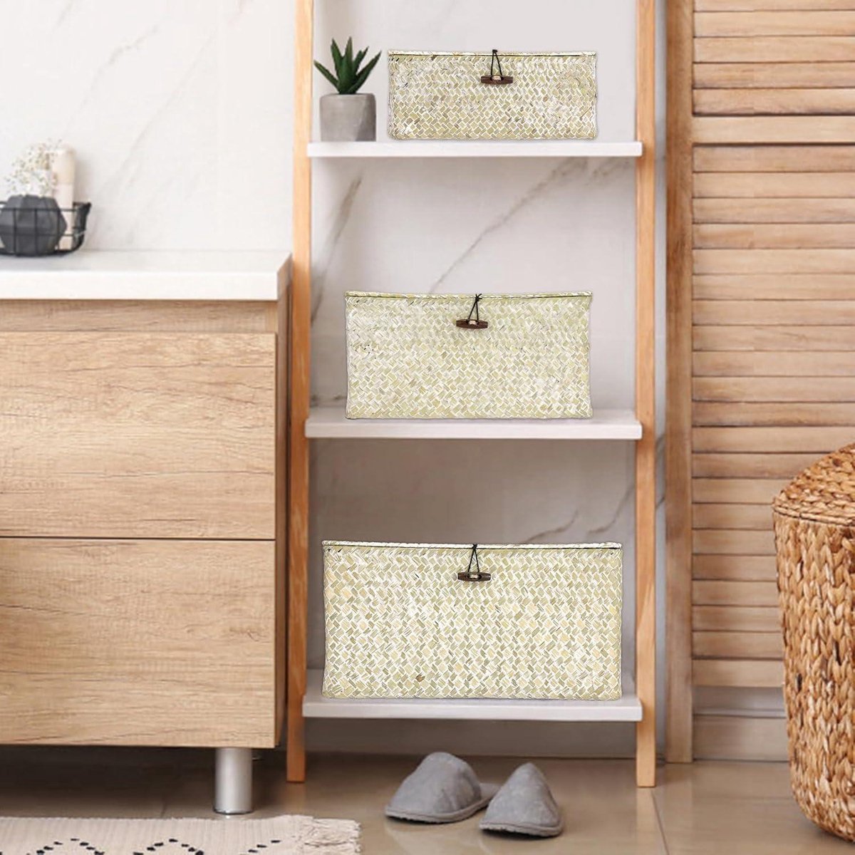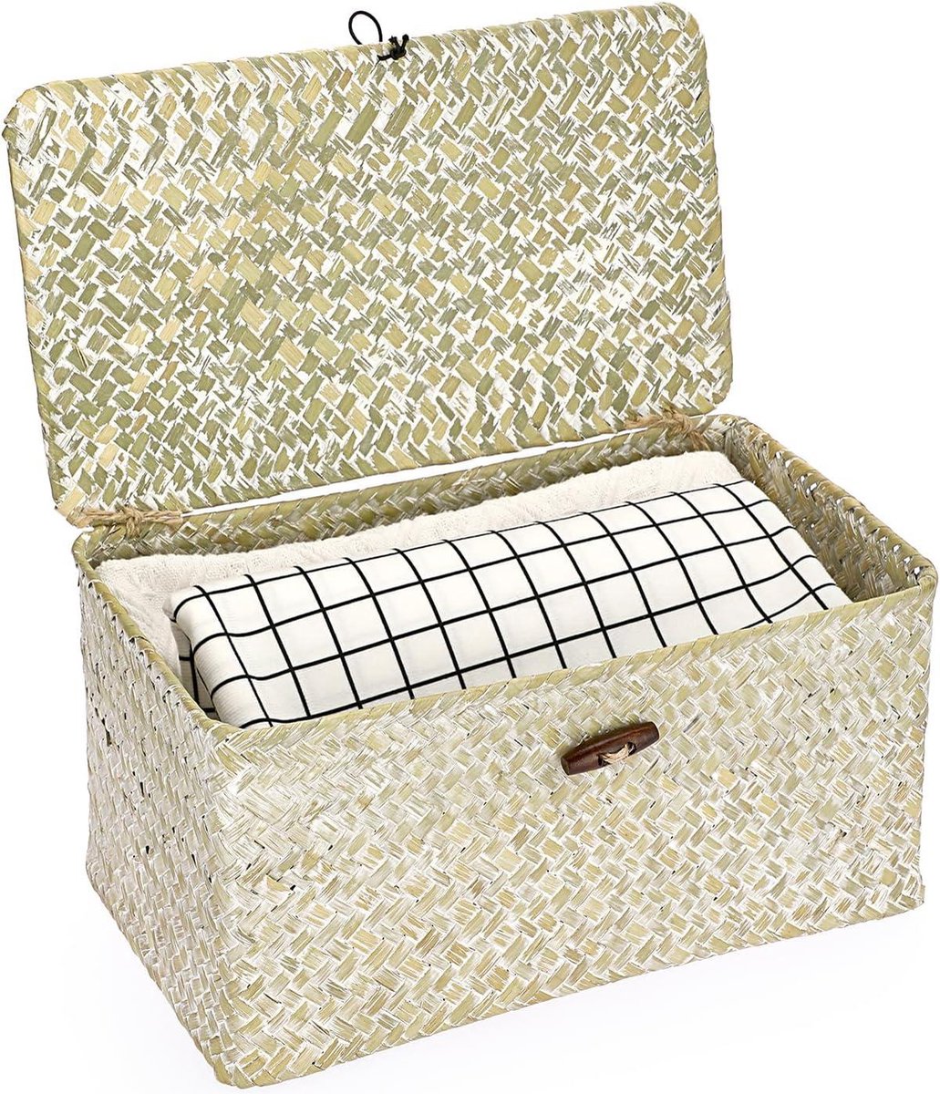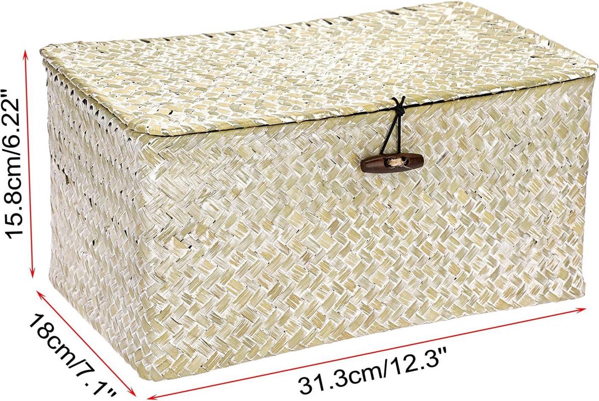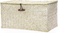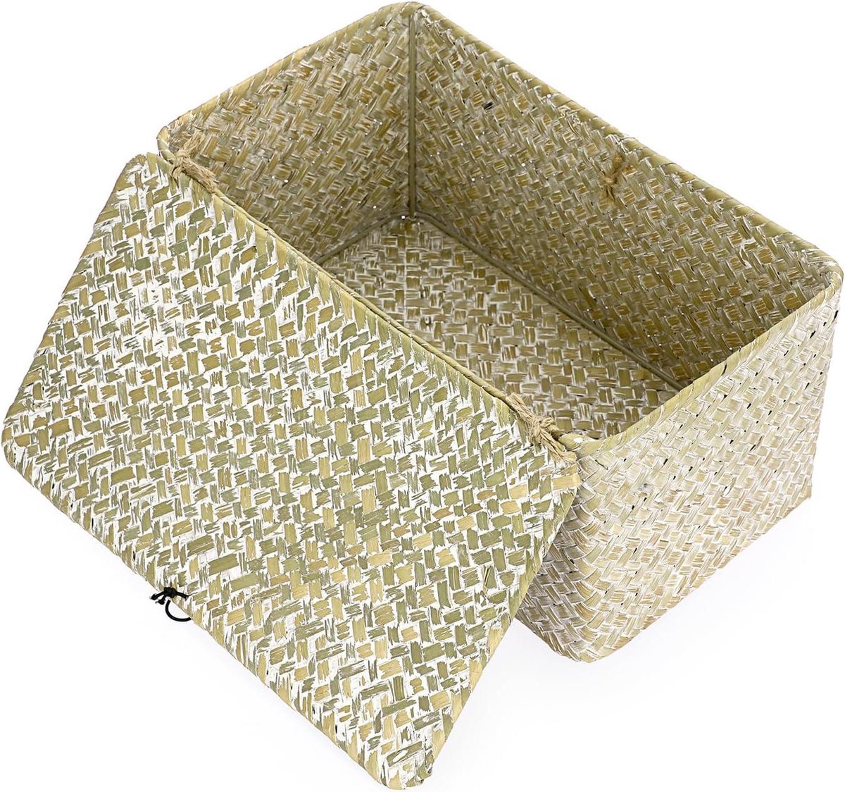 Rieten mand met deksel sweet living - Opbergmand Zeegras - Geweven rieten bureaumand - Rechthoekige opbergmand voor badkamer en woonkamer - Decoratieve onder plank mand - Multifunctionele opbergmand - Whitewash M Rieten mand met deksel sweet living