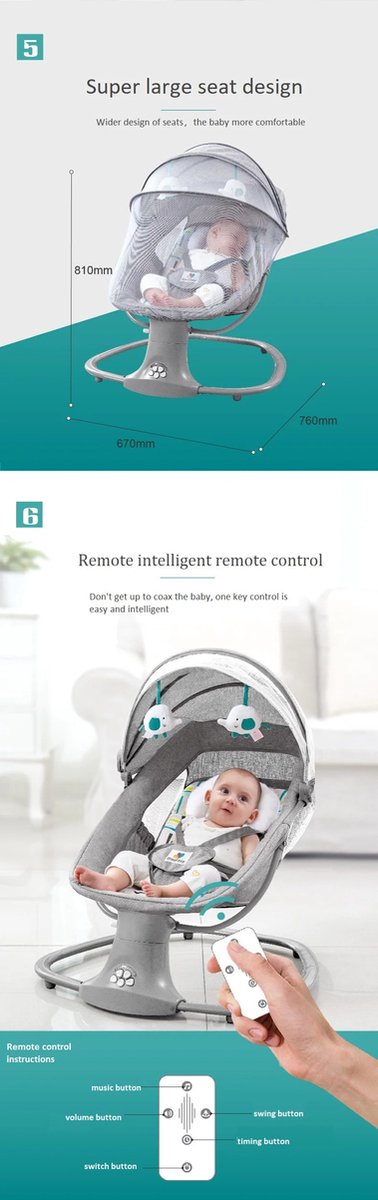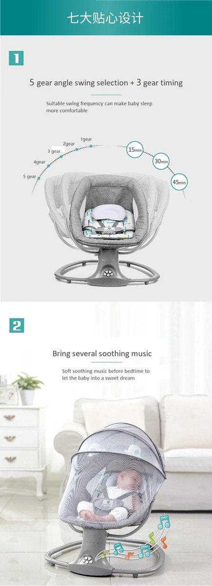 Creëer een comfortabele omgeving voor je baby. Bestel nu en ervaar het gemak en de rust die deze elektrische schommelstoel biedt!