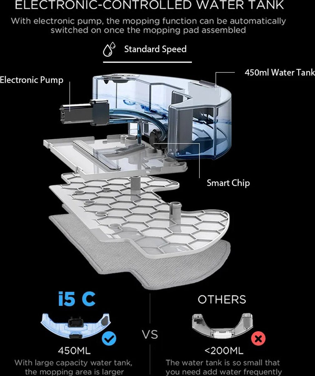 • Dweilrobot met Vloerdetectie: Geniet van een diepgaande reiniging met de dweilfunctie die vloerdetectie gebruikt. De robot past automatisch de reinigingsmodus aan op verschillende vloertypes, waardoor je altijd het beste resultaat krijgt.