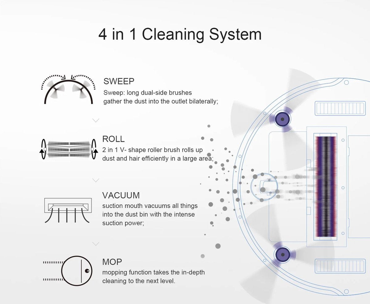 • Slimme Navigatie: De robotstofzuiger beweegt doelgericht door jouw huis dankzij geavanceerde navigatietechnologie. Elk hoekje wordt grondig gereinigd, zonder verspilde tijd of energie.