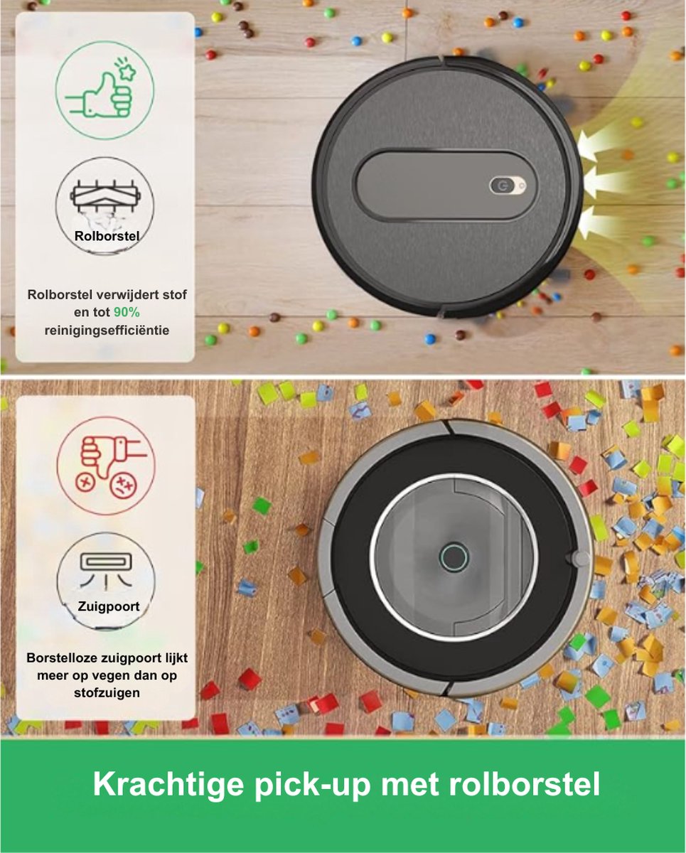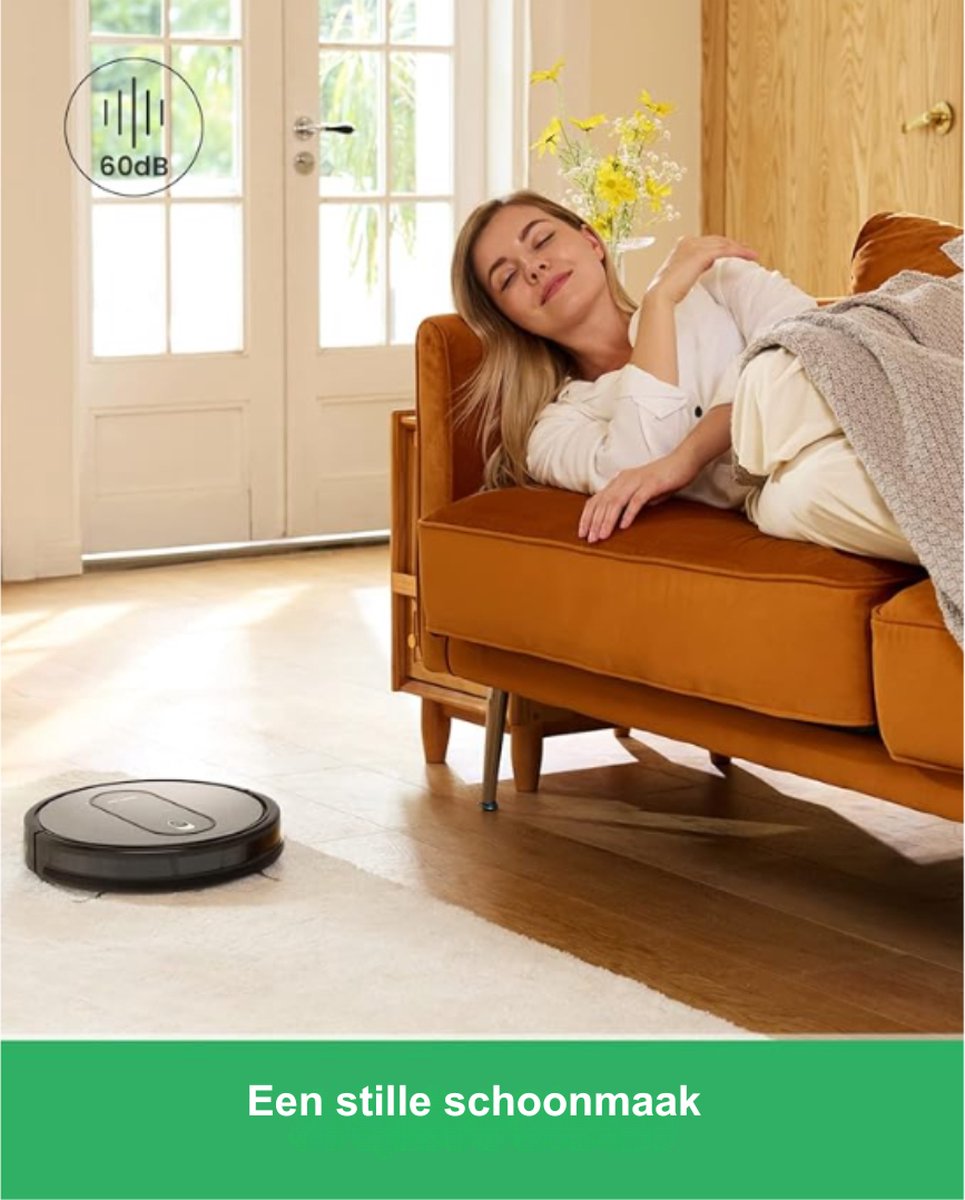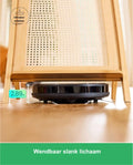 - 2-in-1 schoonmaakoplossing: Deze robotstofzuiger combineert stofzuigen en dweilen in één apparaat, waardoor je vloeren zowel schoon als glanzend zijn. Hij verwijdert stof, vuil, en vlekken in één enkele beweging.