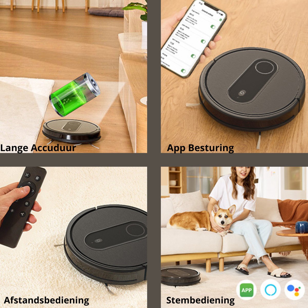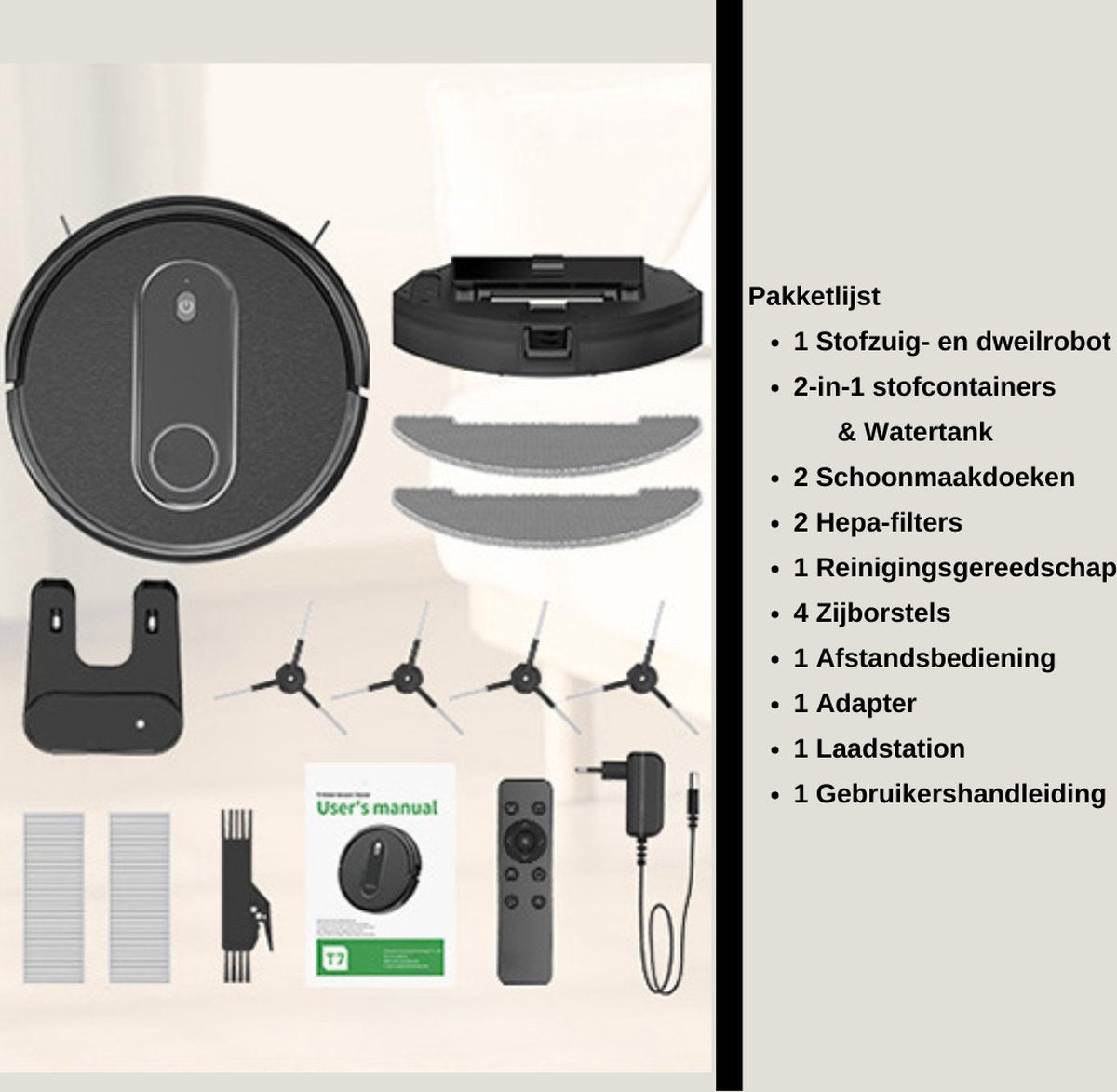 Robotstofzuiger Met Laadstation - Robotstofzuiger Met Dweilfunctie - Robot Stofzuiger - Dweilrobot - Dweilmachine - Dweilsysteem Elektrisch - Huisdieren - 120 Minuten Looptijd - Ultraplat En Stil Ontwerp - Met WiFi-App En Spraakbediening