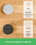 Ultraplat en Stil: Het slanke ontwerp van slechts 7,34 cm hoogte maakt het mogelijk om onder meubels te reinigen waar andere stofzuigers niet bij kunnen. In de stille modus produceert de robotstofzuiger minder dan 60 dB geluid, zodat u kunt genieten van een schone omgeving zonder storende geluiden.
