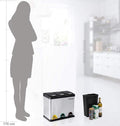 Robuuste 3-in-1 Pedaalemmer voor Afvalscheiding - 24 Liter - Staal, Zilver - Afvalemmer Eenvoudig te Reinigen