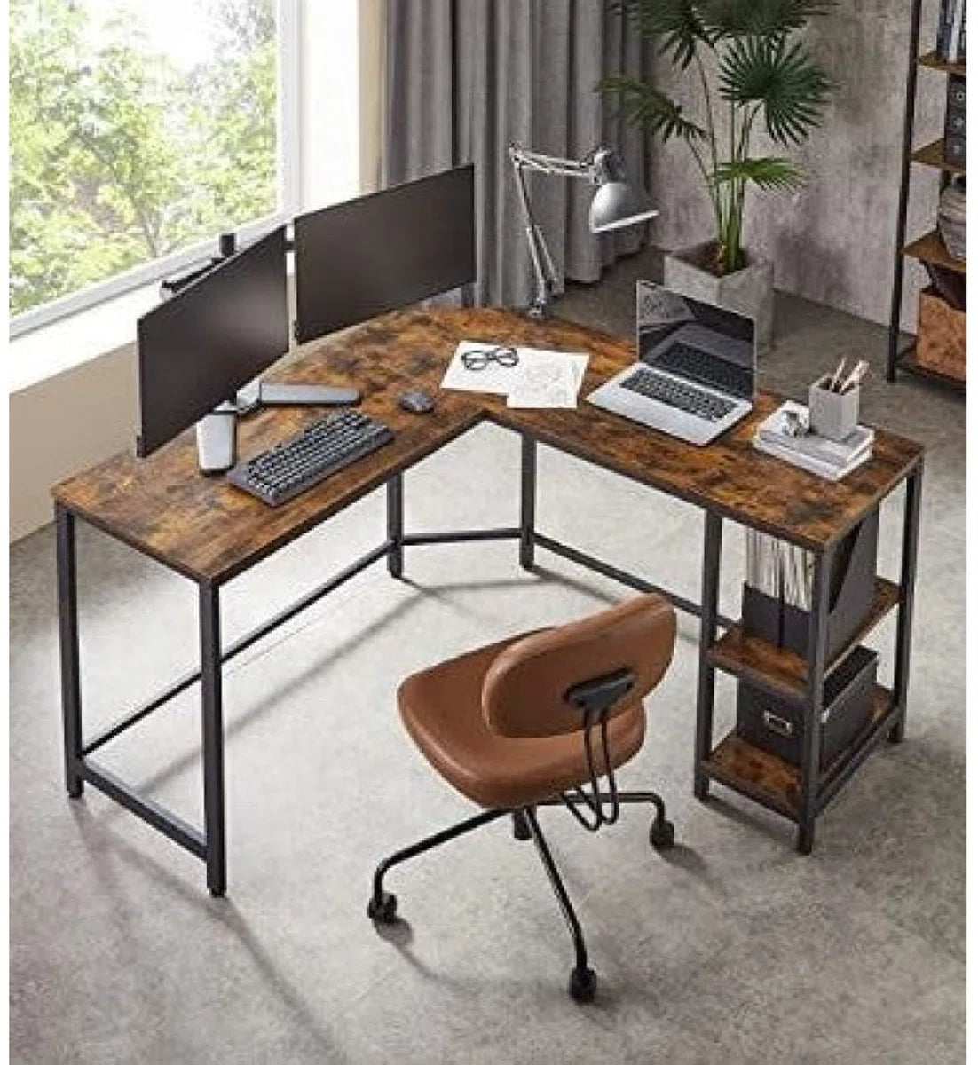 Rocket - MIRA Home - Bureau - Laptop tafel - L-vormig - Hout/Metaal - Bruin/Zwart - 138x138x75