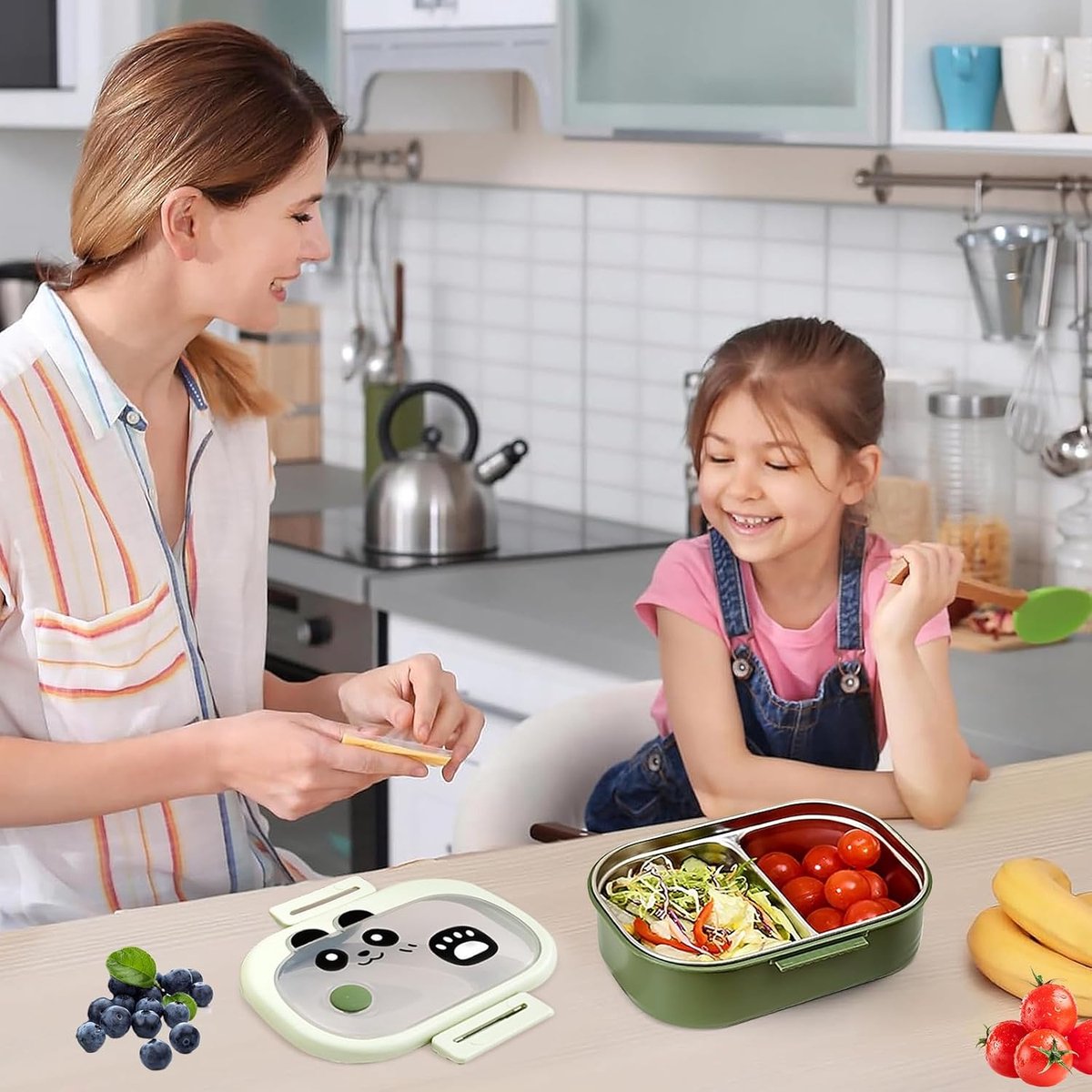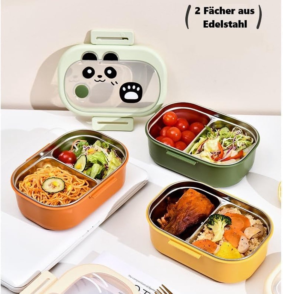 Roestvrijstalen broodtrommel voor kinderen met vakken, lunchbox met scheidingswand, BPA-vrije bento box, snackbox voor meisjes en jongens, snackbox voor school en kleuterschool