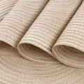 Eenvoudig te reinigen: de ronde geweven placemats kunnen eenvoudig worden schoongemaakt door te schudden of met een vochtige doek af te vegen. Vlekken kunnen worden verwijderd met zeepwater. Niet geschikt voor machinewas.