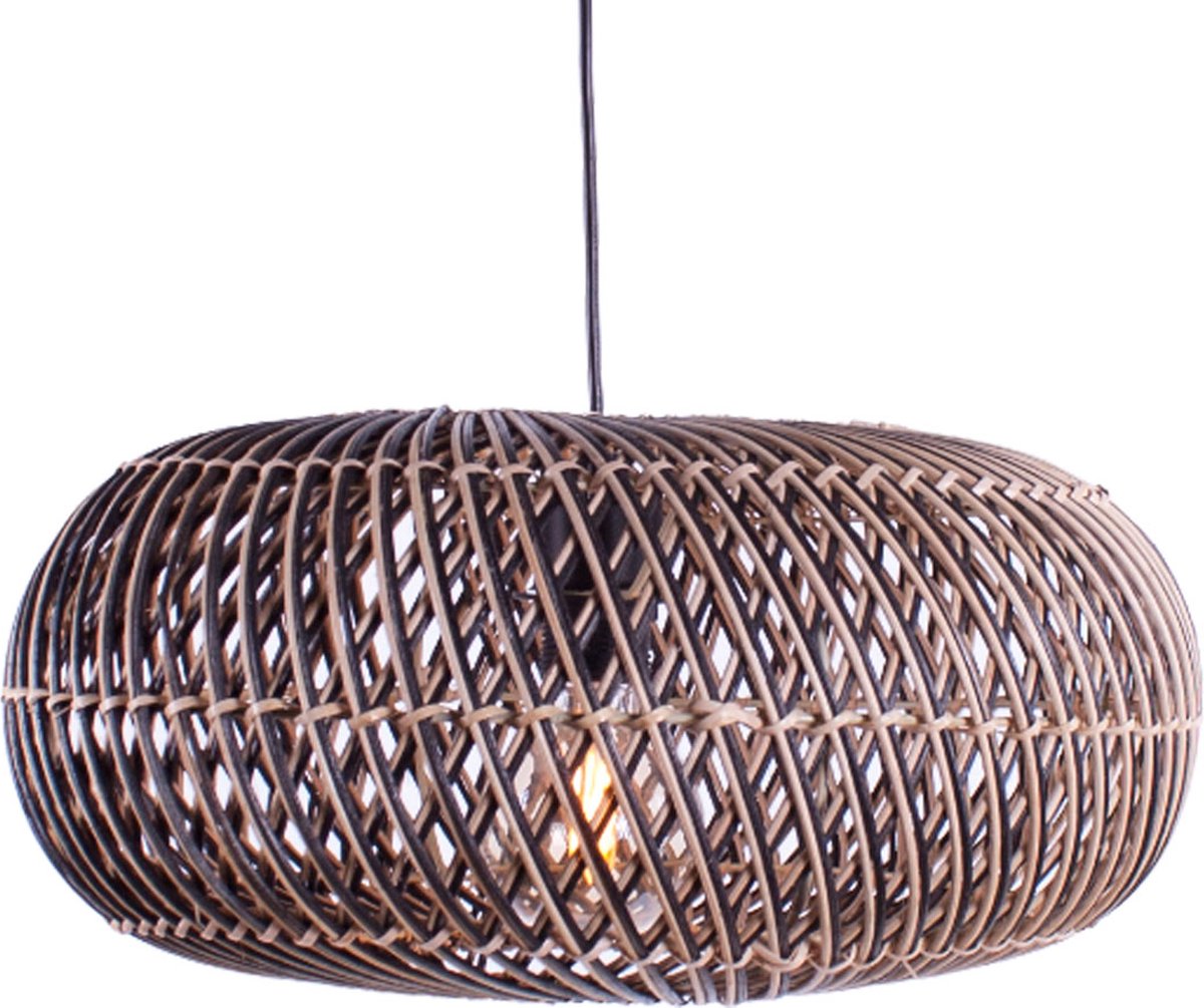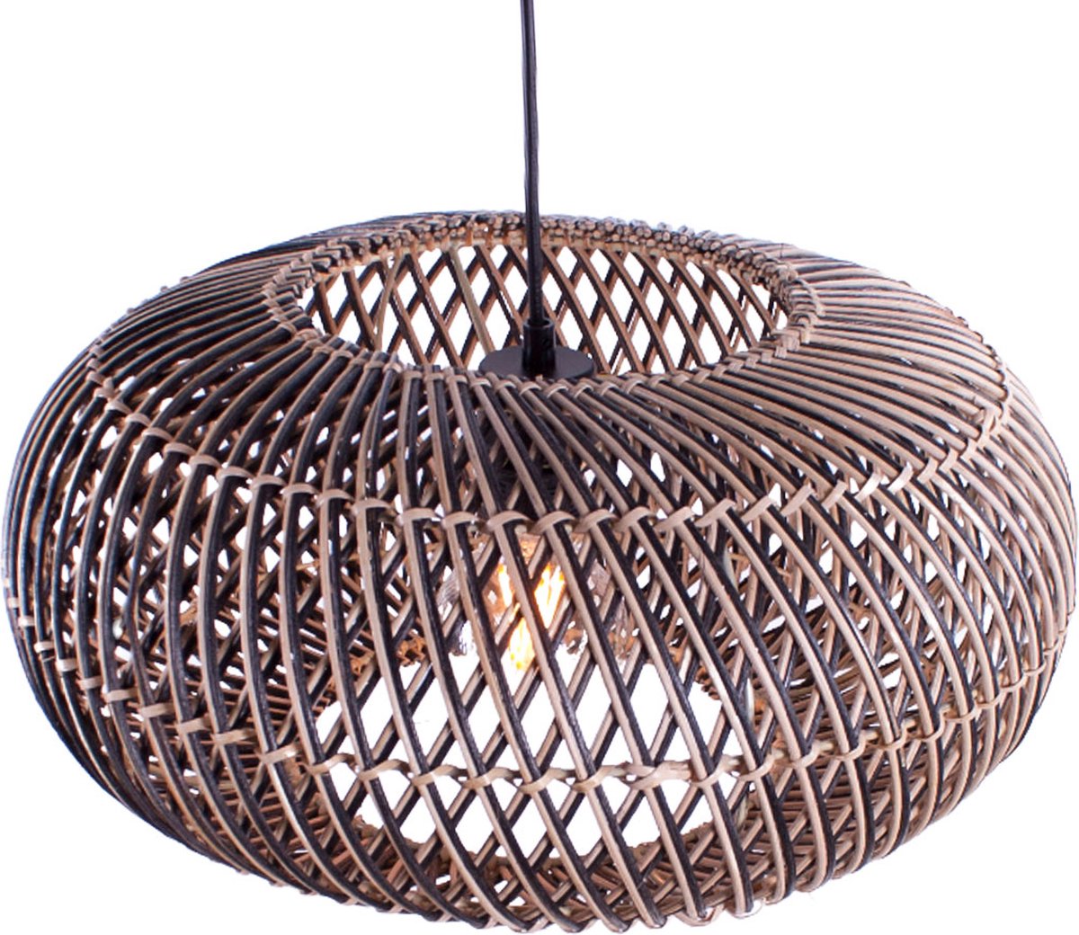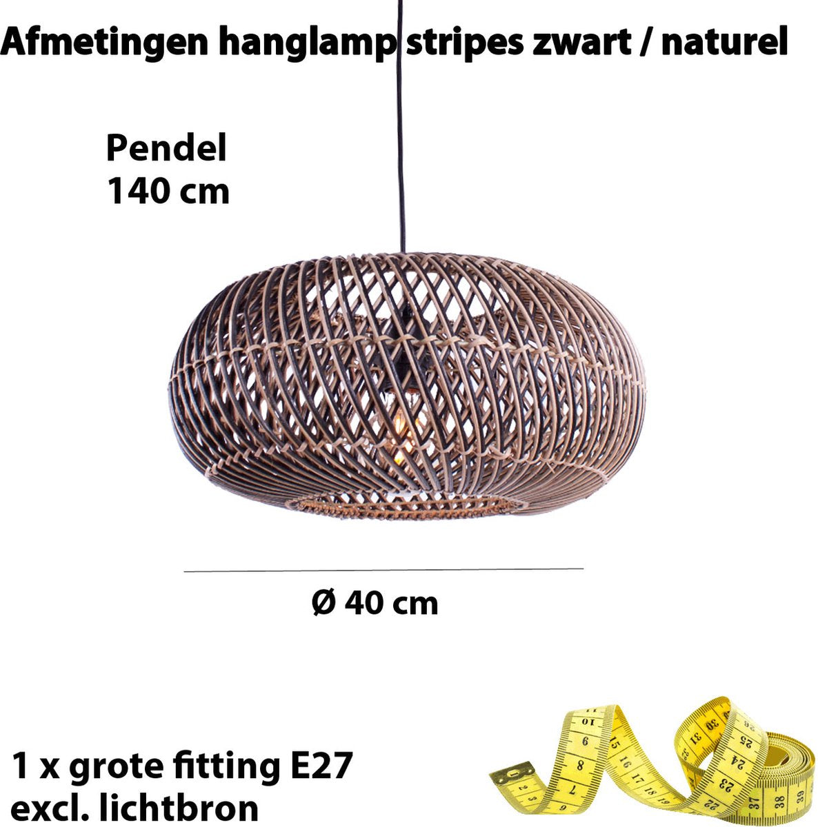 Rotan hanglamp Stripes | 1 lichts | zwart / naturel | rotan / metaal | Ø 40 cm | in hoogte verstelbaar tot 140 cm | eetkamer / eettafel / woonkamer lamp | modern / landelijk design