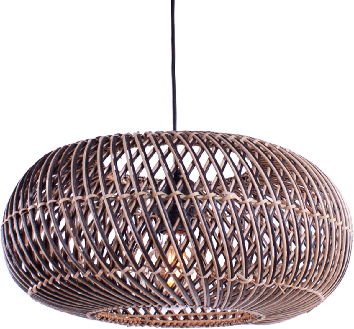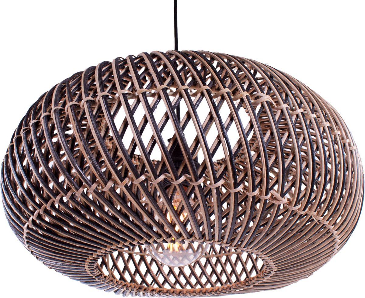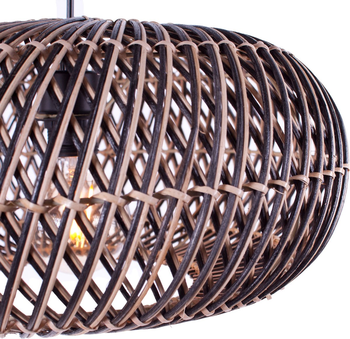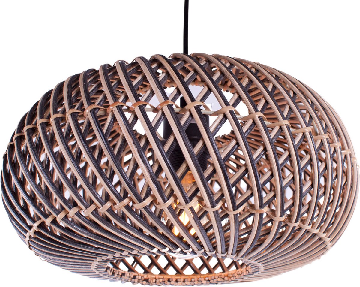 Rotan hanglamp Stripes | 1 lichts | zwart / naturel | rotan / metaal | Ø 40 cm | in hoogte verstelbaar tot 140 cm | eetkamer / eettafel / woonkamer lamp | modern / landelijk design