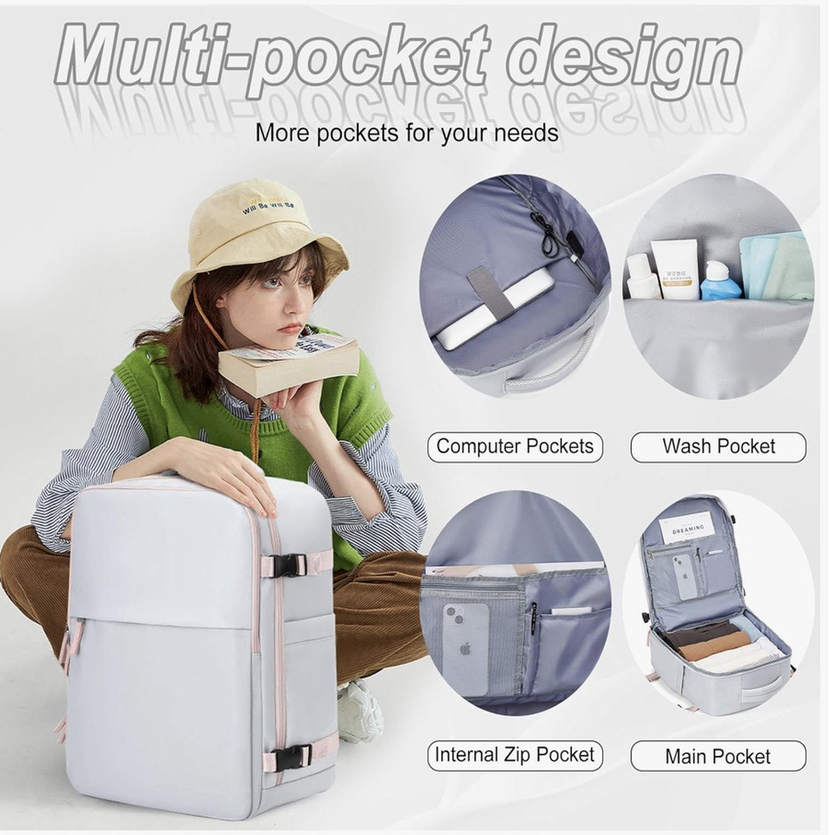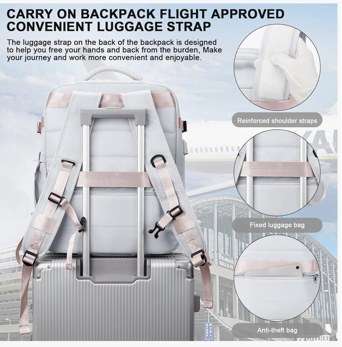 • USB-OPLAADPOORTONTWERP: U kunt uw telefoon altijd en overal opladen (Opmerking: deze rugzak bevat geen powerbank, u moet deze zelf voorzien). Aan de achterkant van de handbagagerugzak is ook een verborgen ritsvak ontworpen voor het opbergen van uw paspoort, mobiele telefoon, portemonnee en andere waardevolle spullen voor privacy/veiligheid/gemak.