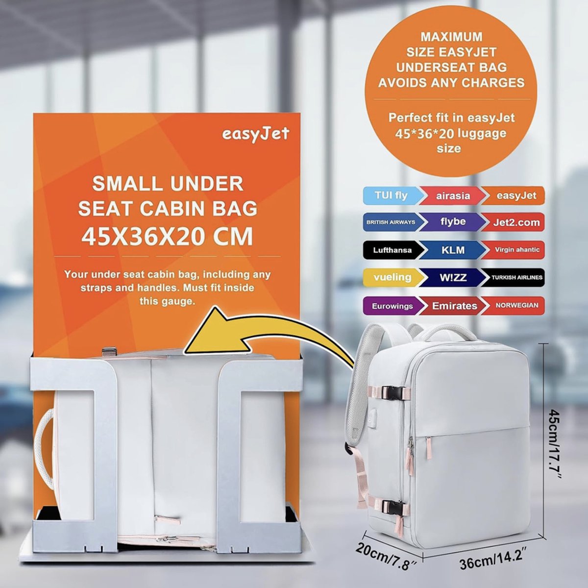 • PERFECTE CABIN BAG VOOR EASYJET: De maat van deze reisrugzak is 45x36x20CM, voldoet aan het assortiment gratis handbagage van Easyjet: 45x36x20CM, U hoeft zich geen zorgen te maken over het betalen van extra verzendkosten voor overmaat. En hij kan 180° worden geopend, net als een koffer, zodat hij snel door de luchthavenbeveiliging kan, en kan in de bagageruimte en onder de stoel worden geplaatst.