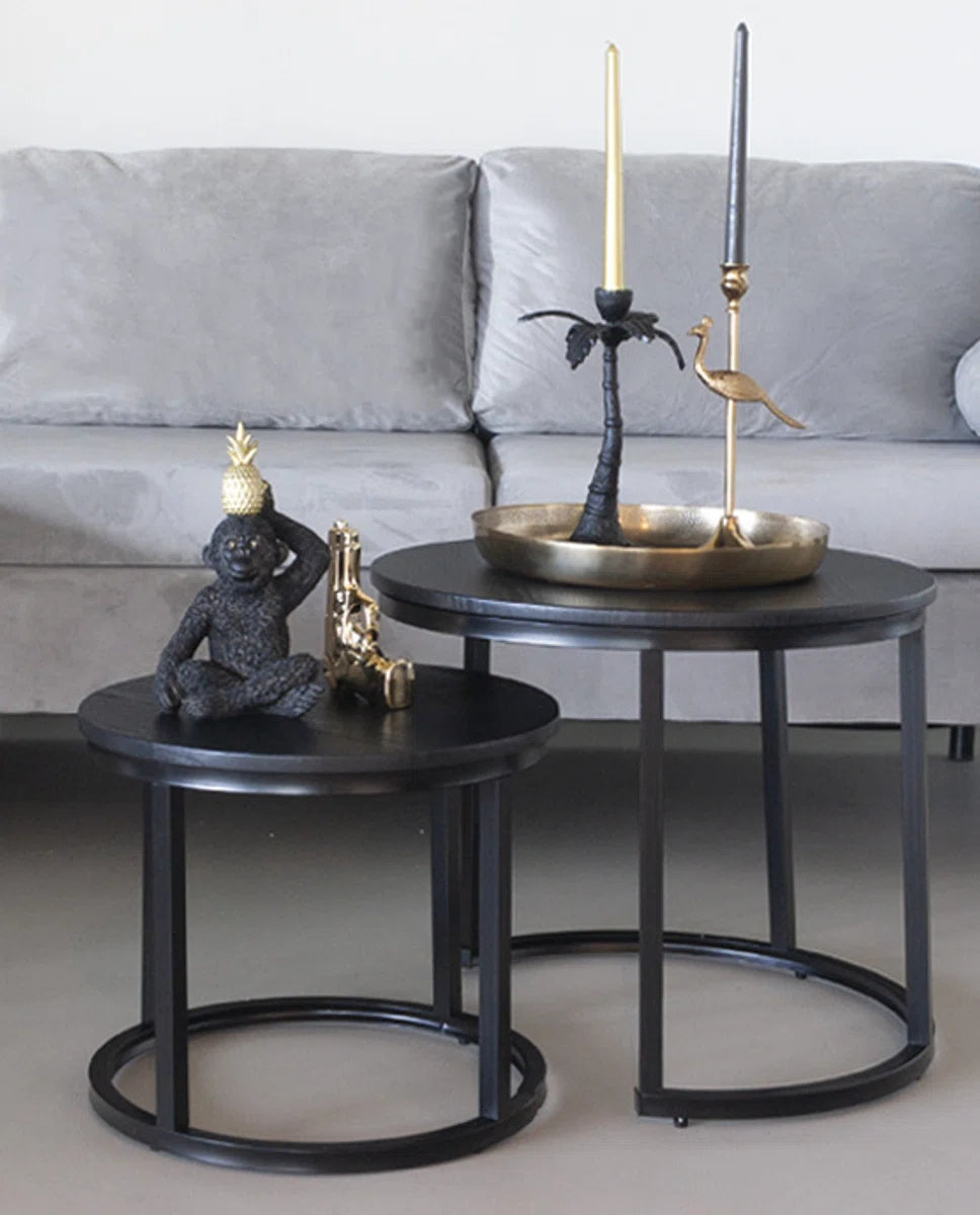 Salontafel 2 delig rond Rutger industrieel bijzettafel MDF side table