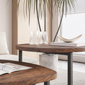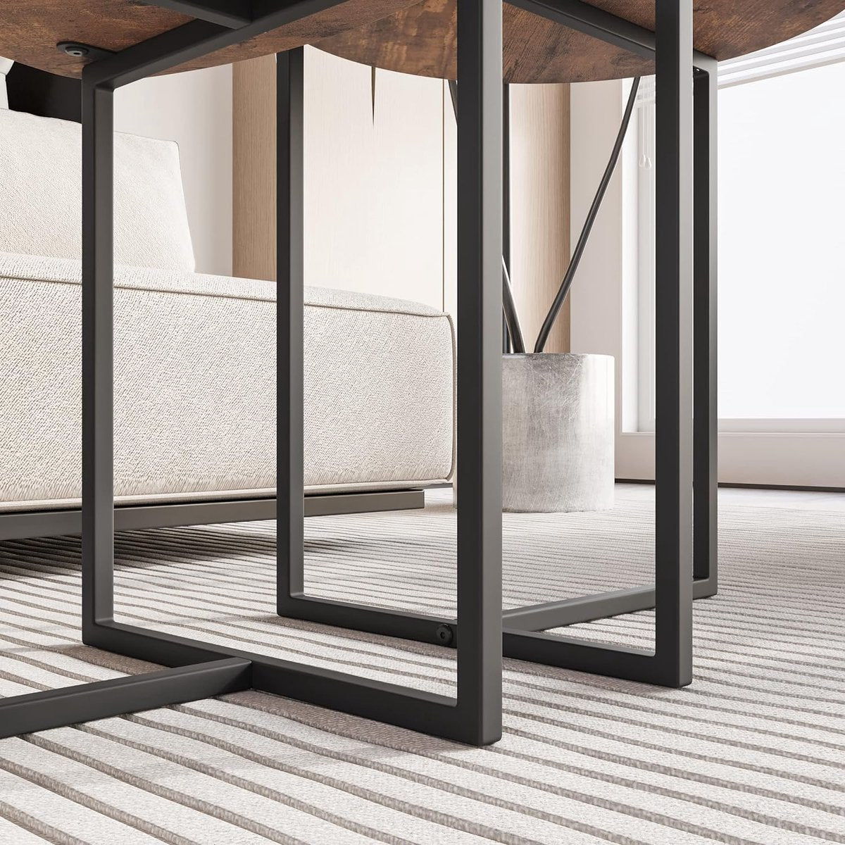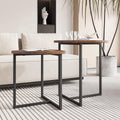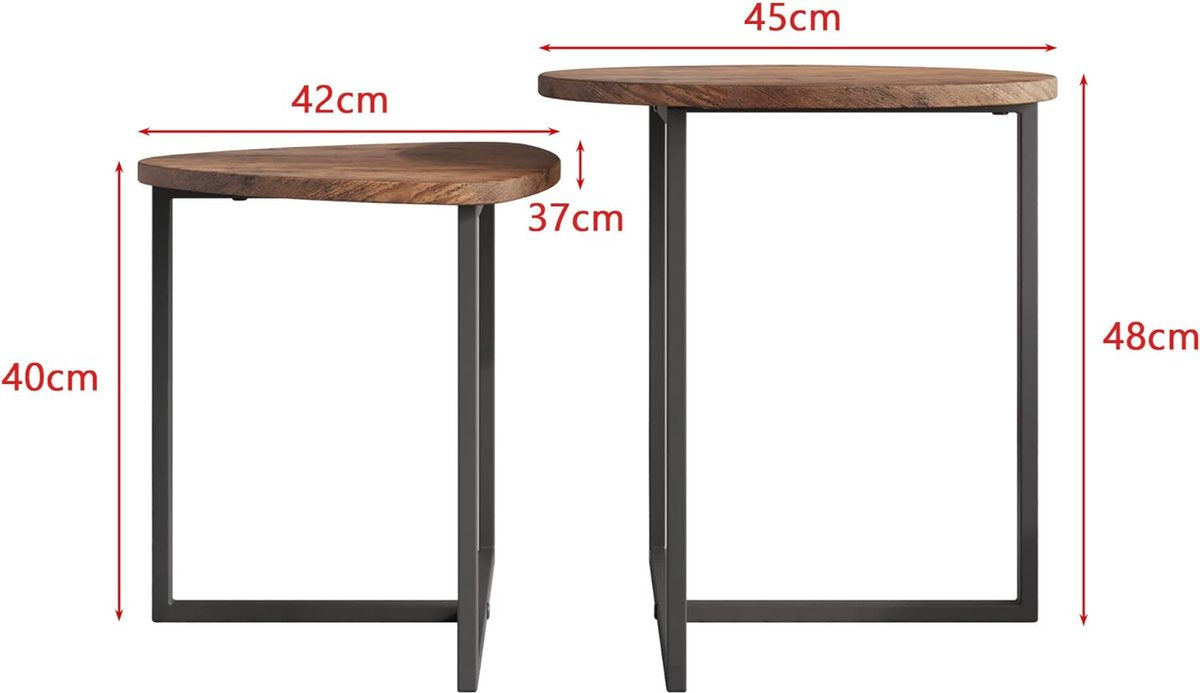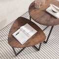 Salontafel, rond, set van 2, bijzettafel, koffietafel, metalen onderstel en hartvorm, een tafelblad van hout, industrieel design, woonkamertafel, modern, zwart + bruin